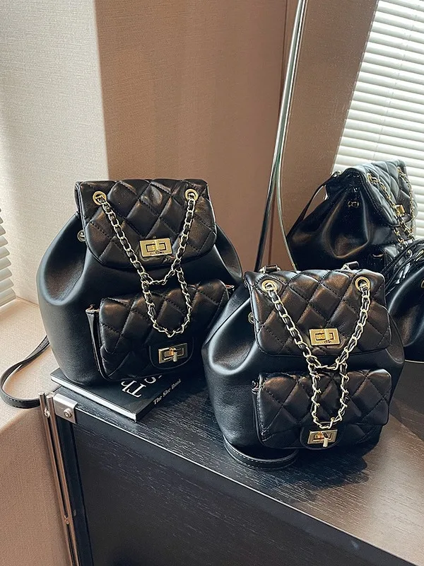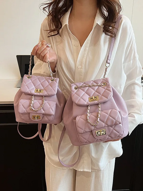 Trendy Mini Diamond Chain Women's Backpack New 2026 Spring Fashion Versatile Crossbody Bag Small Bookbag Shoulder Bag
