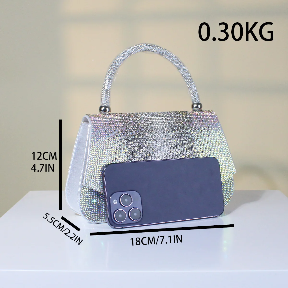 Evening Bag Rhinestone Party Prom Silver Bag Fashion Shiny Handbag Black Formal Women's Purse All-matching Chain Bags