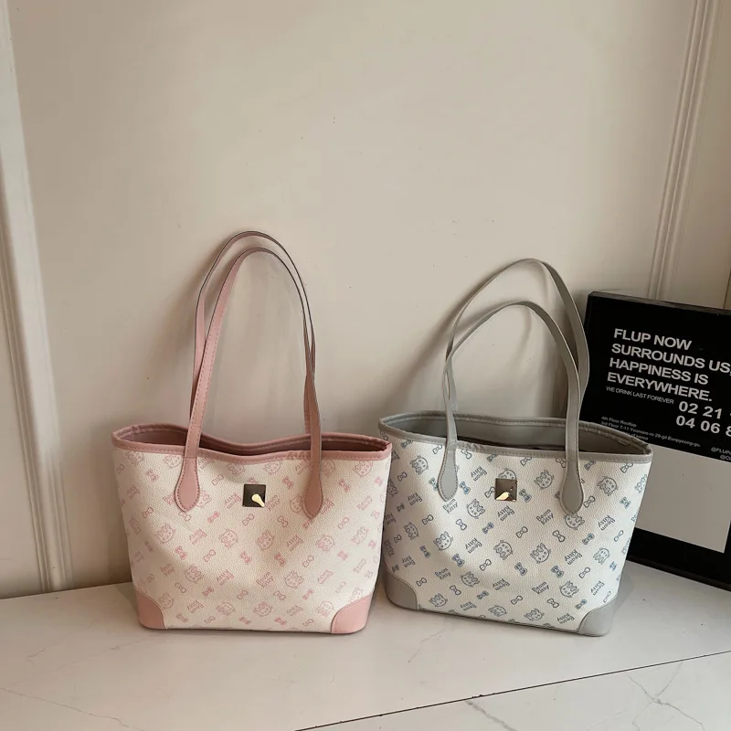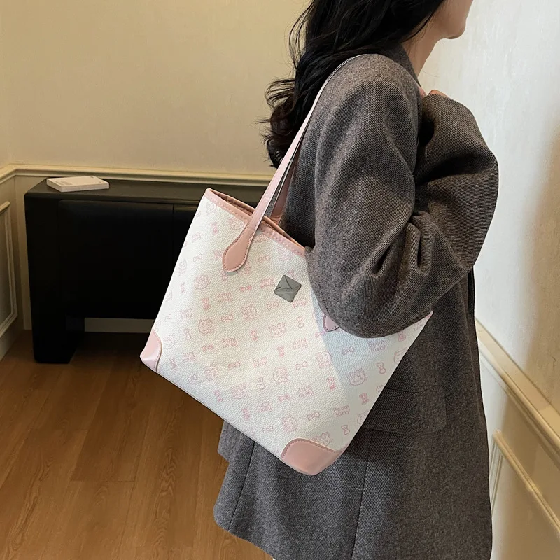 Cartoon Tote Bag Women Kawaii Mousse Cammy Latte Souffle Printed Shoulder Bag PU Leather Large Capacity Pink Underarm Bag