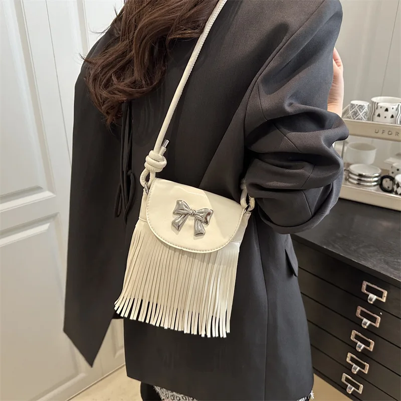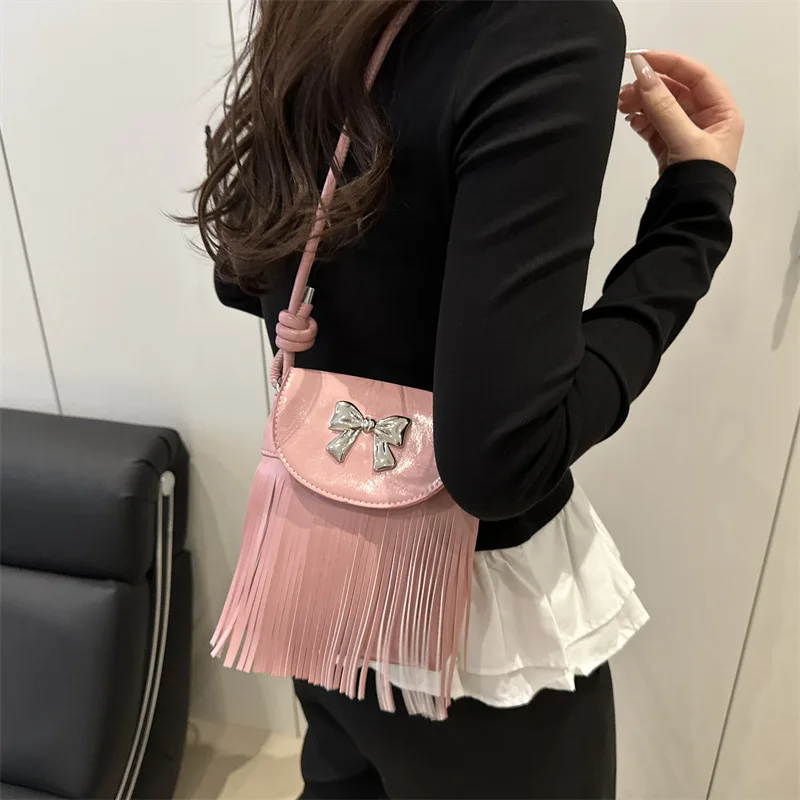 European and American Trendy Soft PU Leather Rivet Tassel Bag Chain Shoulder Crossbody Small Women's Bag
