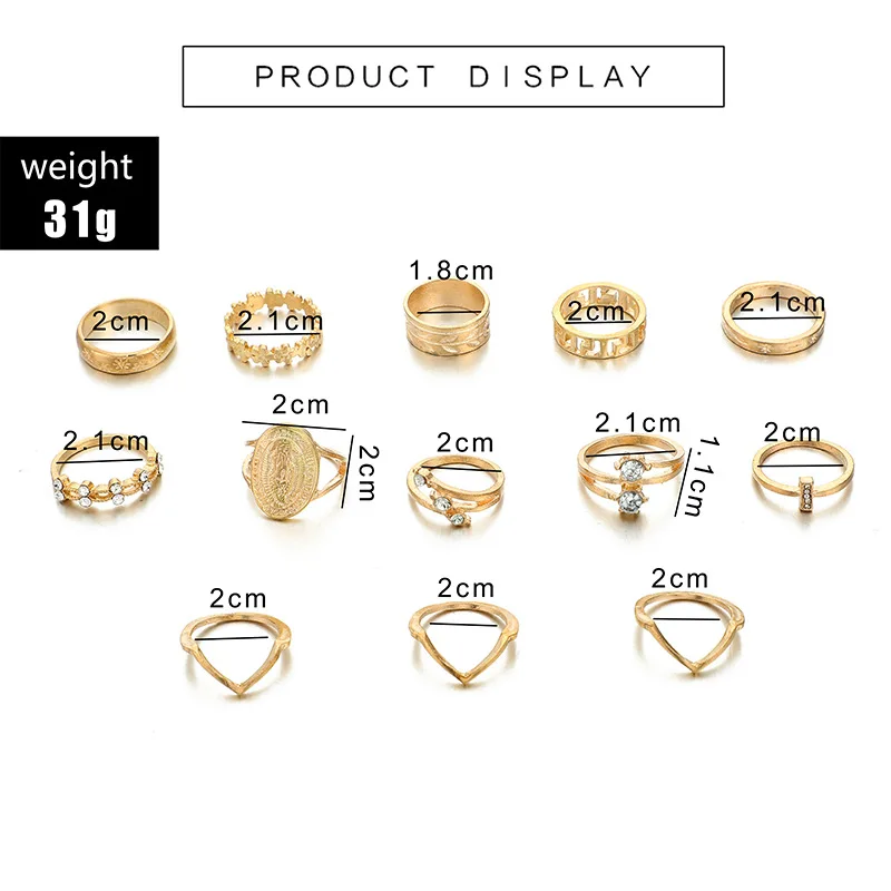 Boho Midi Knuckle Ring Set for Women Crystal Geometric Finger Rings Fashion Bohemian Jewelry