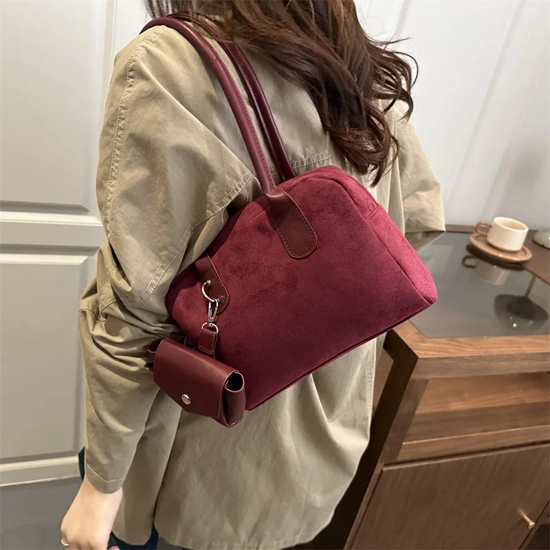 Women Fashion Sling Bag Adjustable Strap PU Leather Vintage Shoulder Bag Solid Color Top Handle Bag Large Capacity Messenger Bag