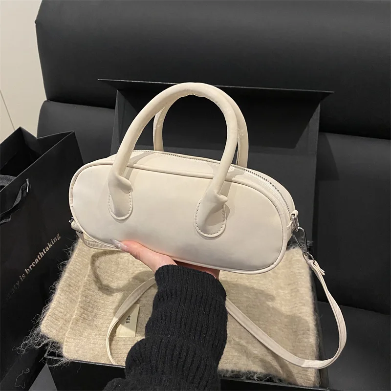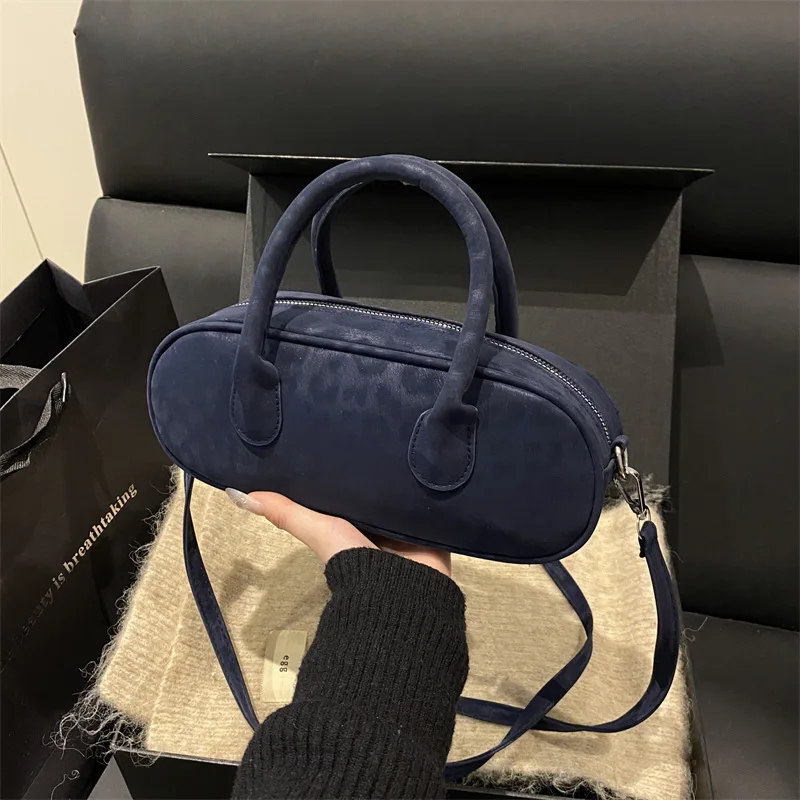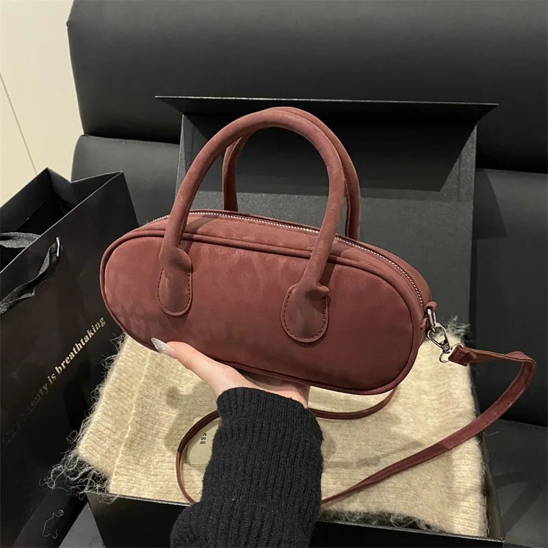 Retro Women's Bag Suede Bowling Handbag Solid Color Casual Shoulder Bag Large Capacity Ladies Underarm Bag Multi-pocket Tote Bag