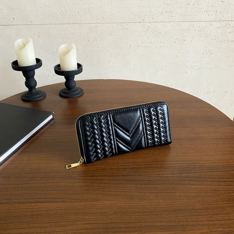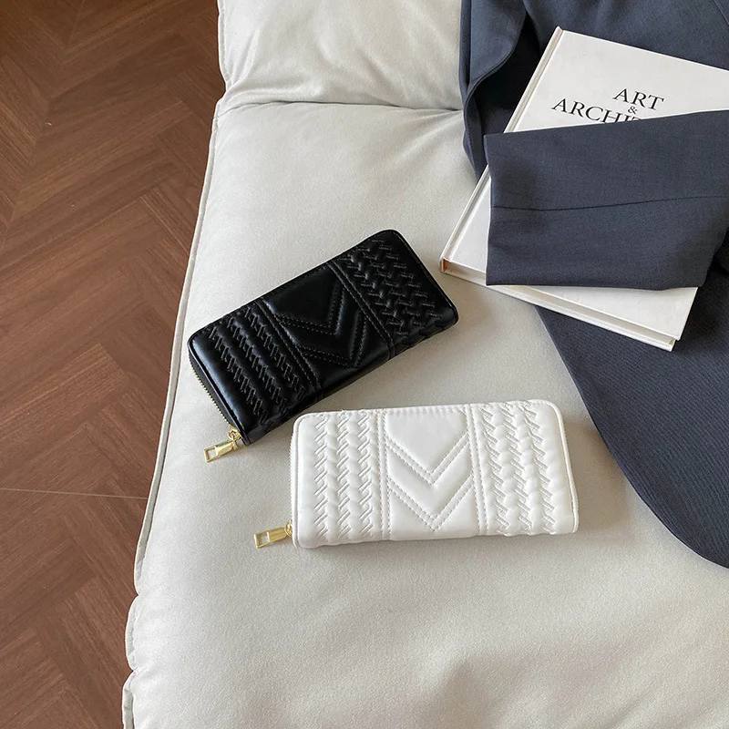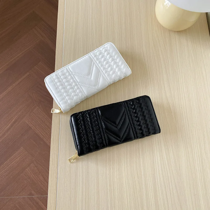 Wrinkled PU Leather Wallet Women Long Large Capacity Handbag New Zipper Multifunctional Zero Wallet