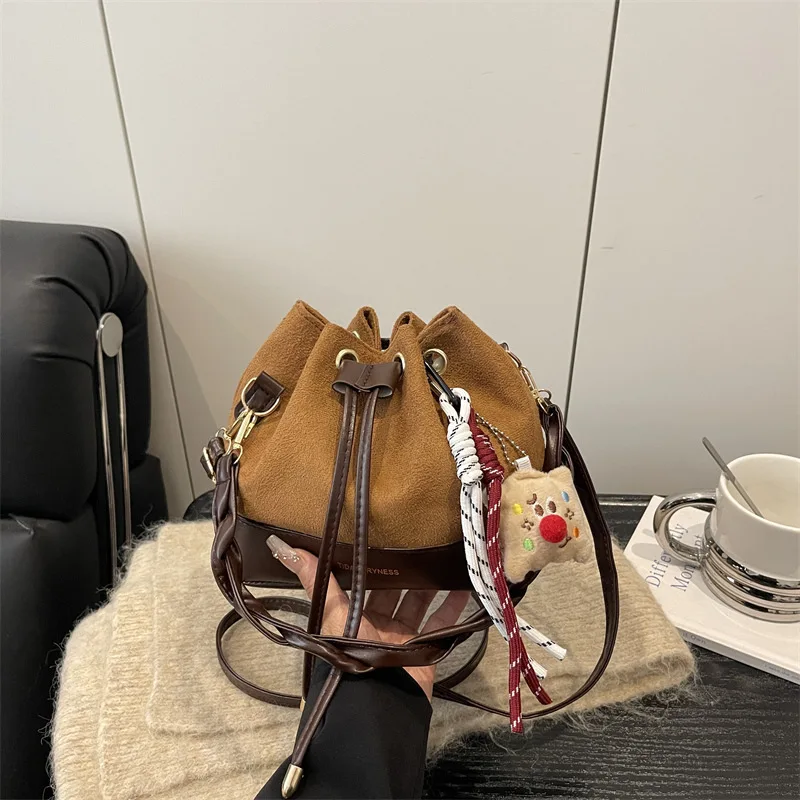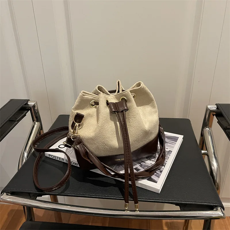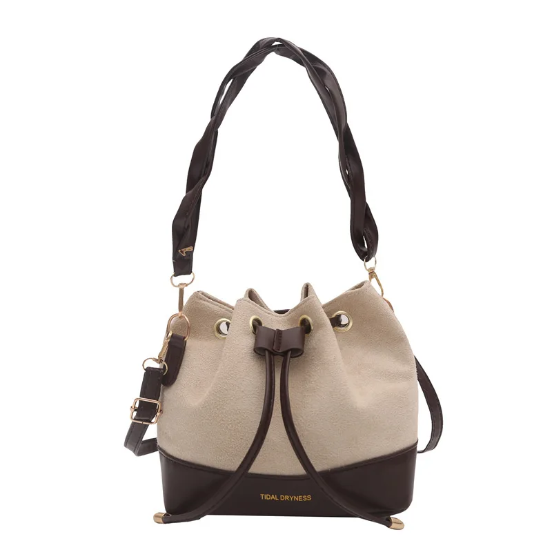 High Quality Fashion Drawstring Solid Color Large Capacity Single Shoulder Bucket Bag