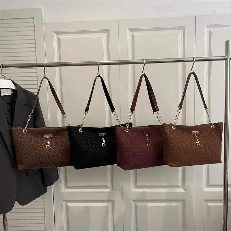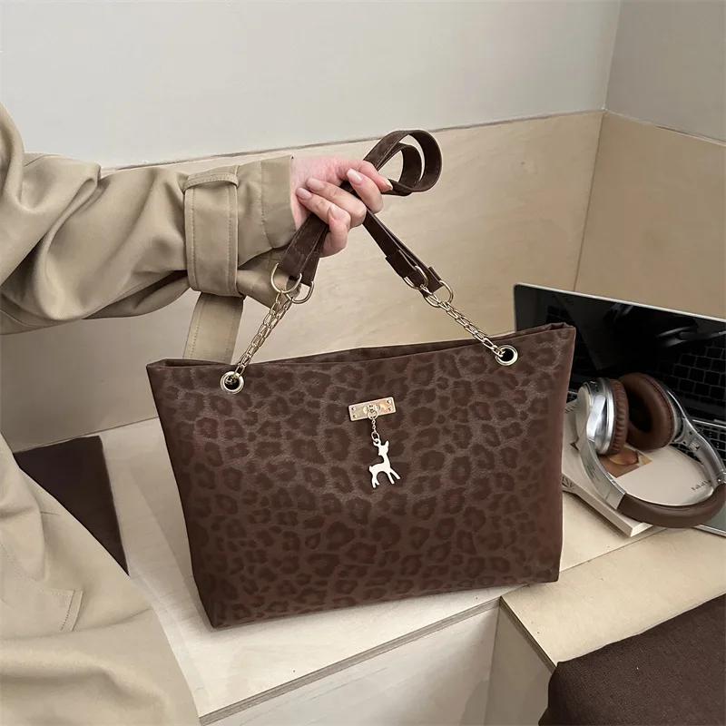 Vintage Leopard Print Handbag Stylish Brown PU Tote Shoulder Bag, Perfect for Women Shopping Commuting Office College Travel