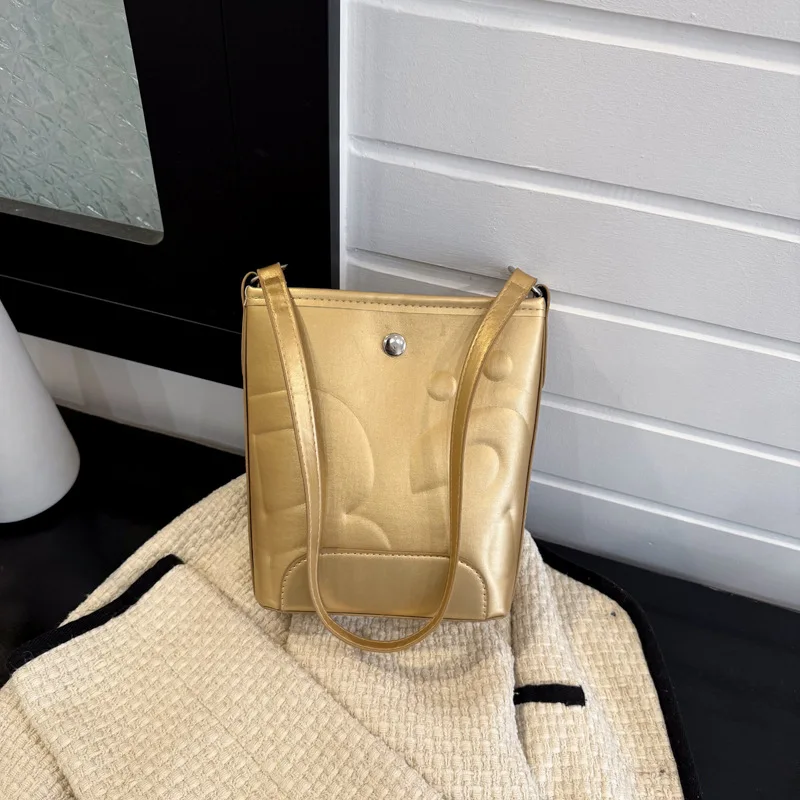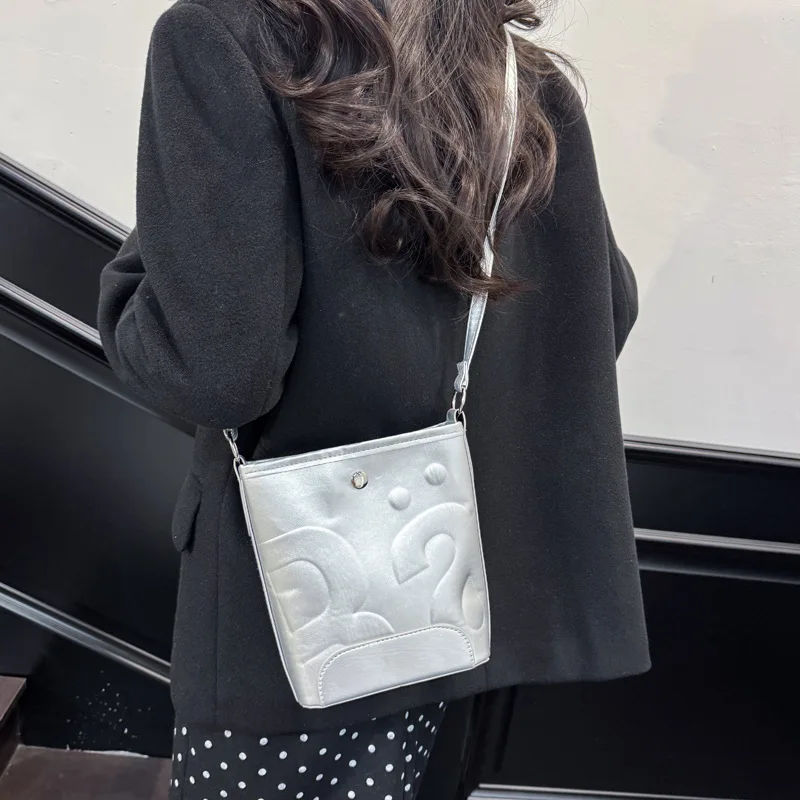 Fashion Luxury Natural PU Leather Ladies Bucket Shoulder Bag Designer Original Women's High-end Small Handbag