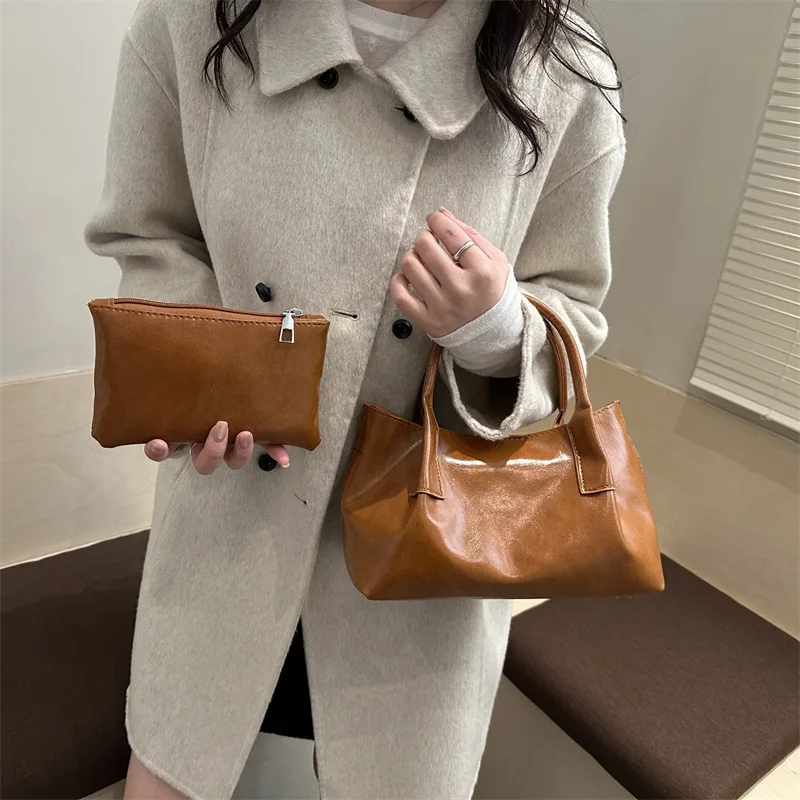 Designer Vintage Popular Ladies Women Crossbody Shoulder Hand Bags Fashion Casual Large Capacity Cowhide Leather Bucket Bag 2026