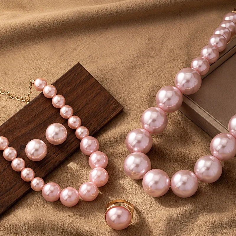 New Design Personality Jewelry Set Unique Punk Statement Gold Silver Pearl Chains Necklace Bracelet for Women