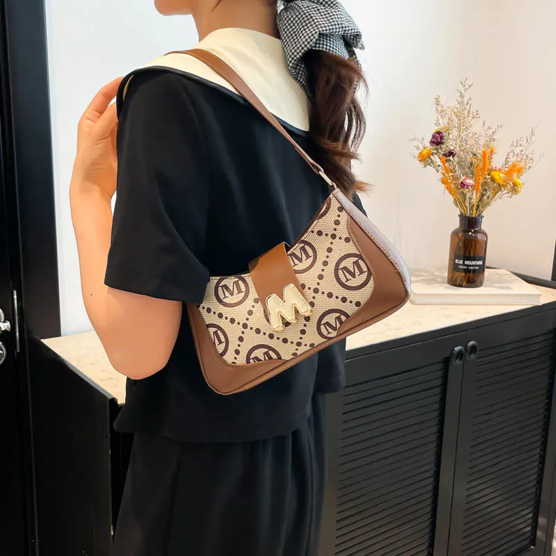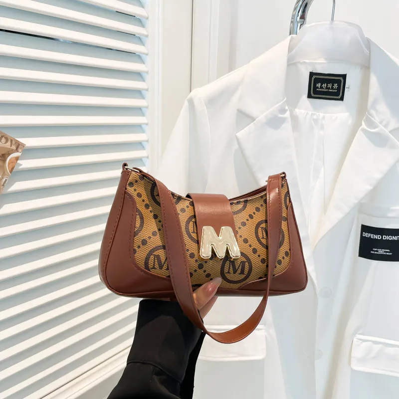 Women's Shoulder Crossbody Bag Fashionable Underarm Simple Small Square Letter Printed Shoulder Bag