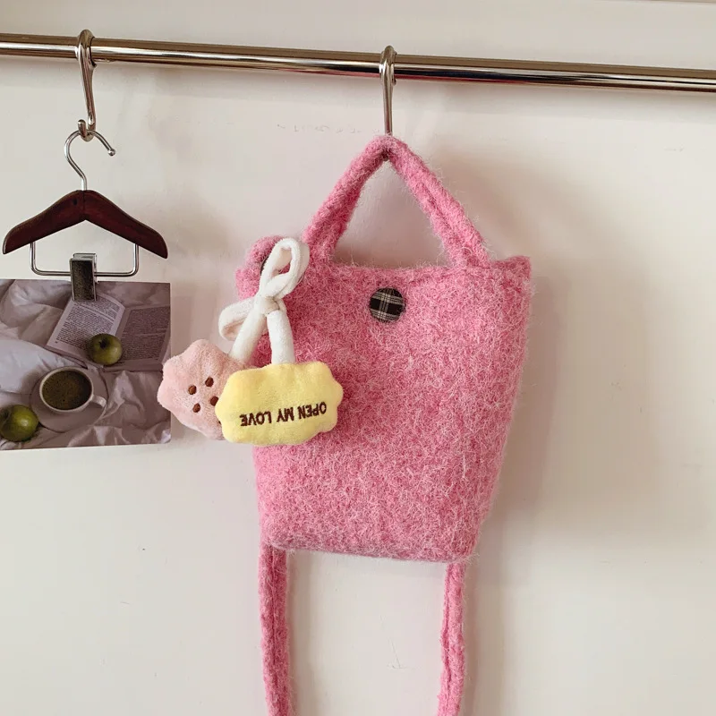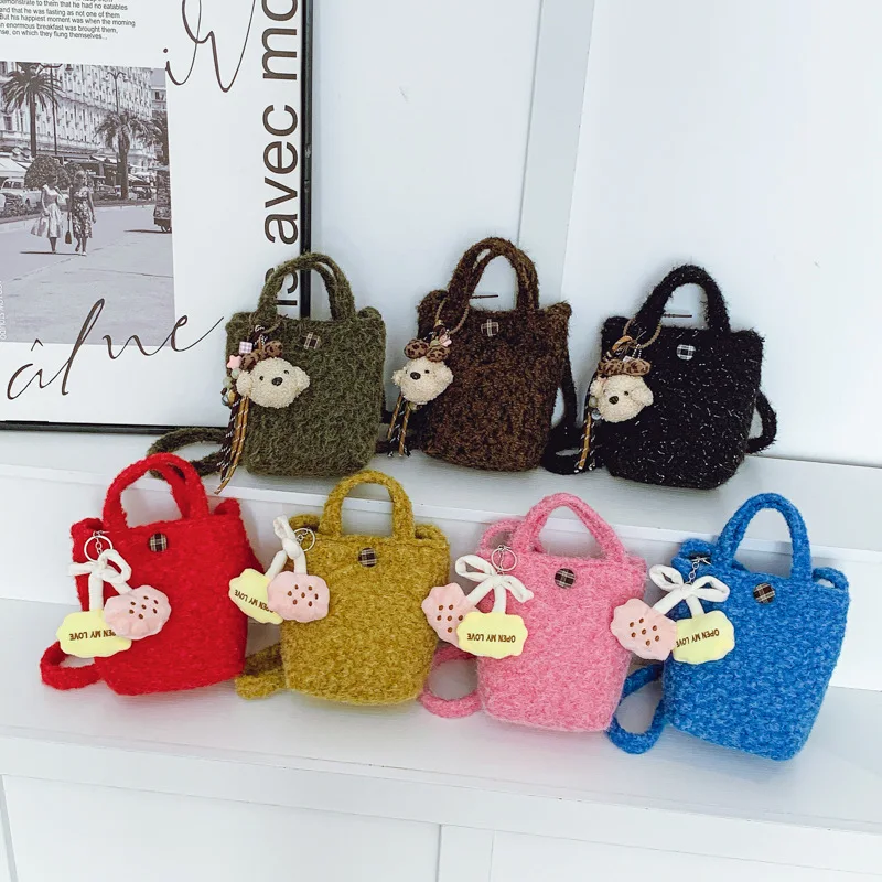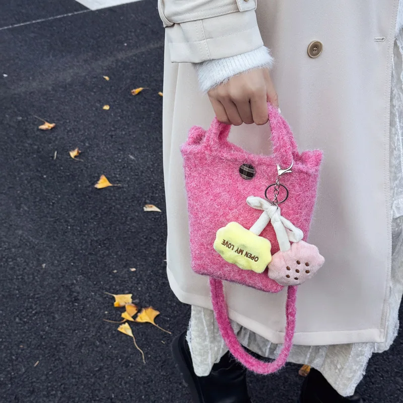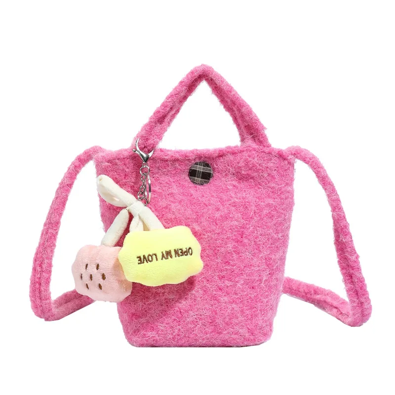 2026 Winter PU Furry Bucket Shoulder Bag Women's Crossbody Purse with Zipper Closure Fashion Stylish for Outings
