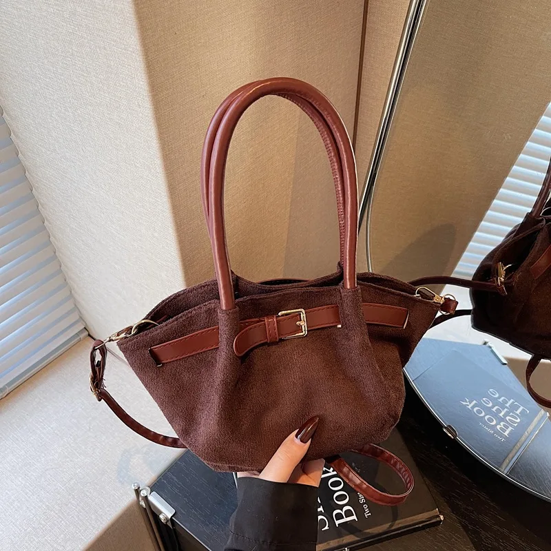 Textured PU Faux Suede Lightweight Women Crossbody Shoulder Bag Winter Trendy Solid Color Daily Commuting Phone Tote Bags