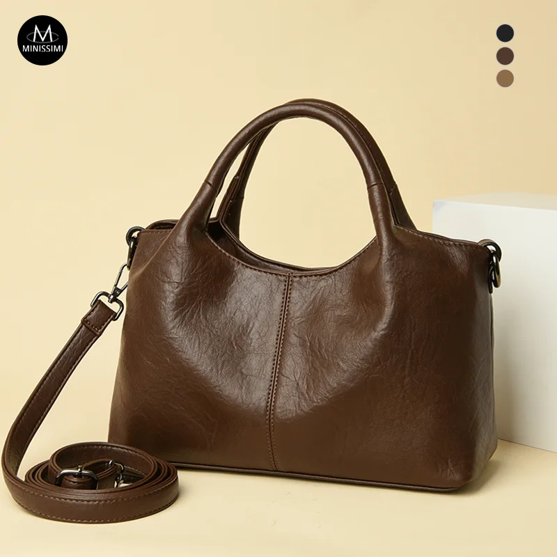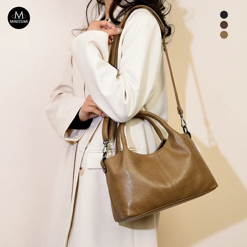 Designer Vintage Popular Ladies Women Crossbody Shoulder Hand Bags Fashion Casual Large Capacity Cowhide Leather Bucket Bag 2026