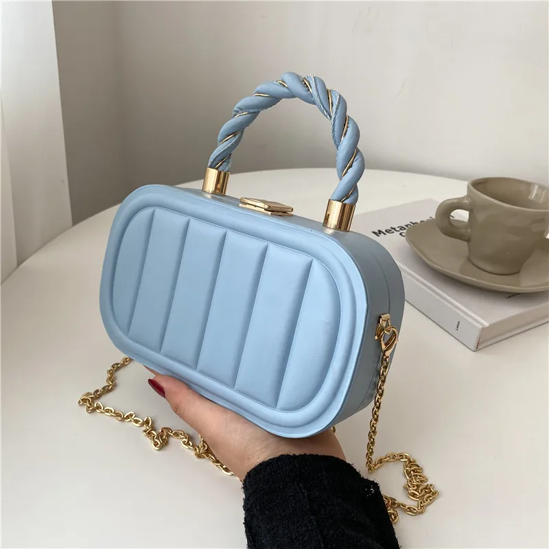 Simple Chain Solid Color Tas Tangan Cute Lock Handbags Women Hand Bags