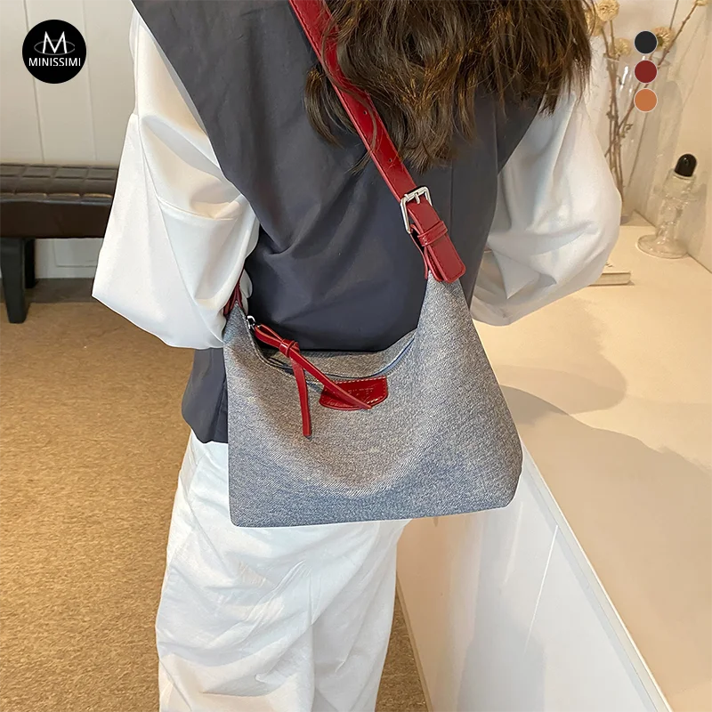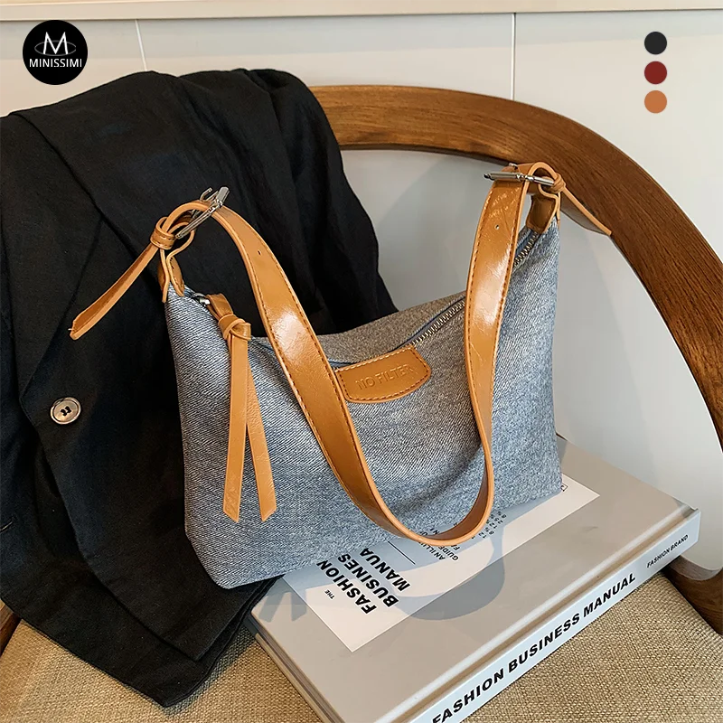MC MINISSIMI Denim Fabric Sac a Main Outdoor Hobo Bags Crossbody Bag Shoulder Bag for Women