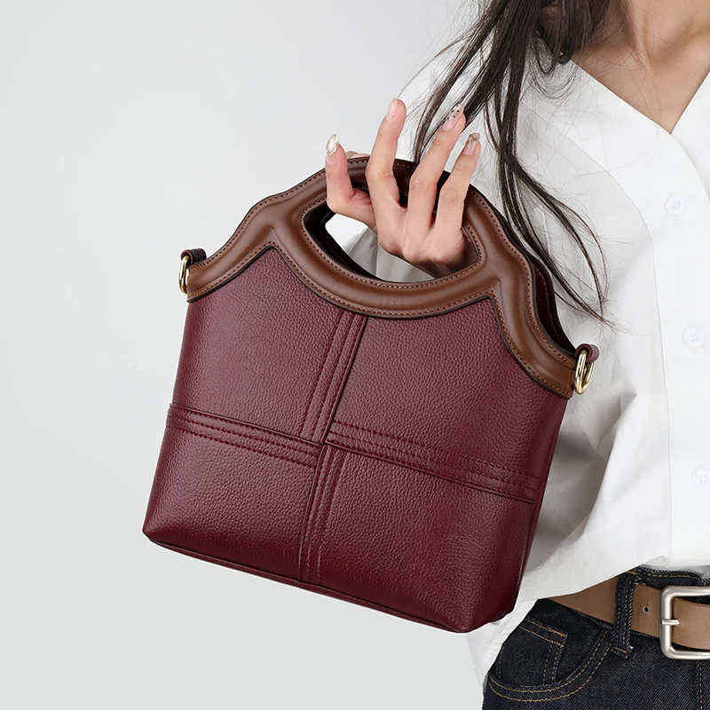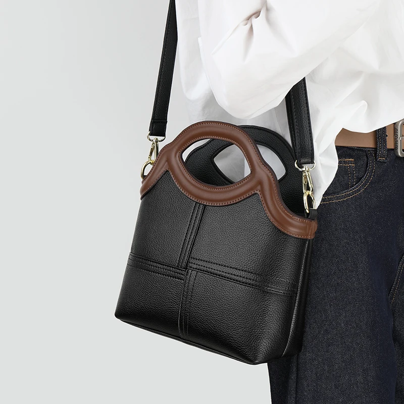 Designer Vintage Popular Ladies Women Crossbody Shoulder Hand Bags Fashion Casual Large Capacity Cowhide Leather Bucket Bag 2026