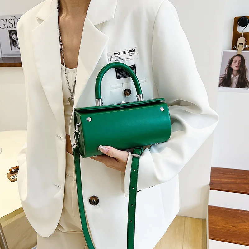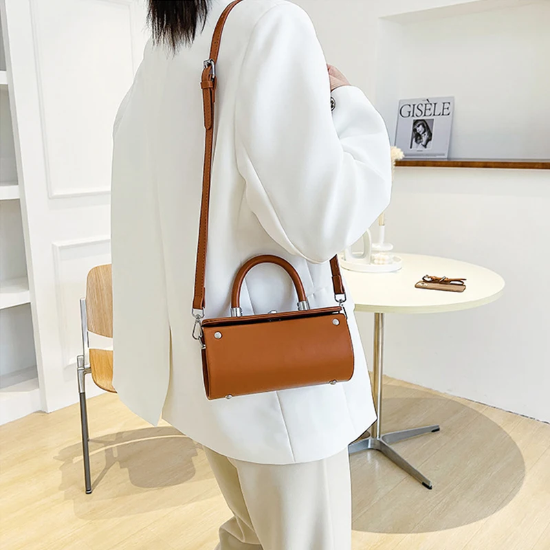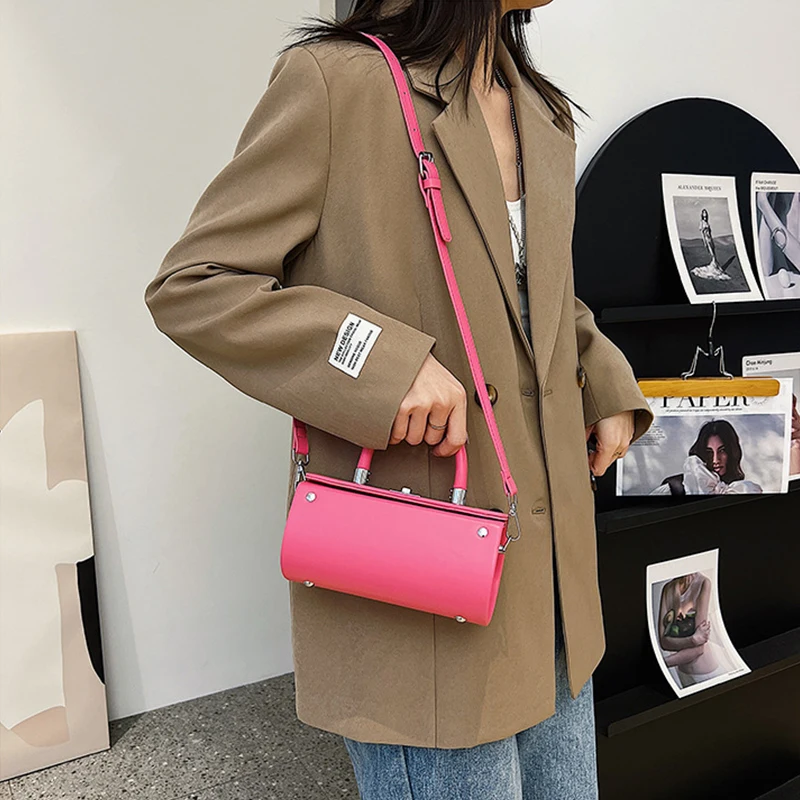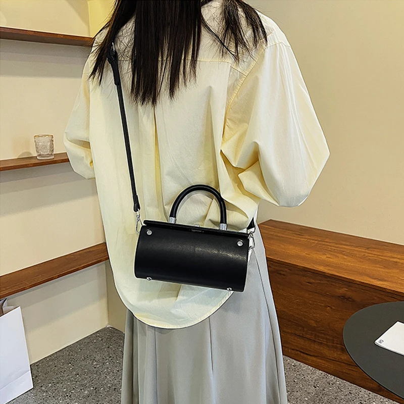 Lock-Accent Cylinder Bolso De Mano Women's Crossbody Bags Top Handle Bag Trendy Purses 2026