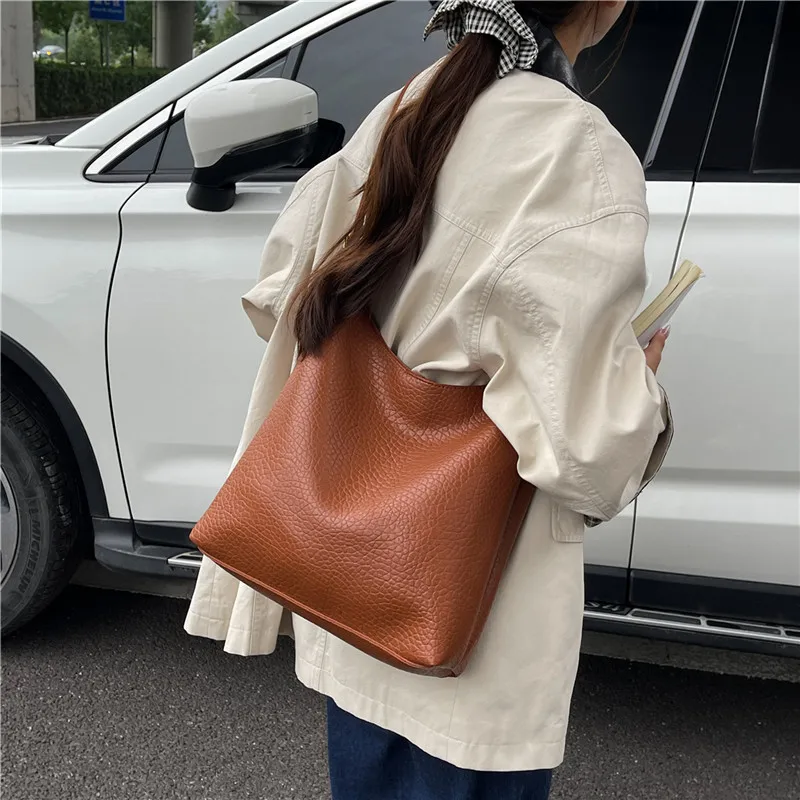 Solid Color Pu Leather Bolsos Para Mujer Tote Bag Waterproof Shoulder Bags Leather Bags Women
