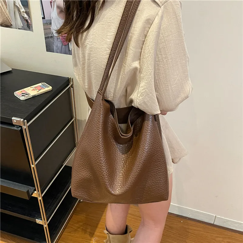 Designer Vintage Popular Ladies Women Crossbody Shoulder Hand Bags Fashion Casual Large Capacity Cowhide Leather Bucket Bag 2026