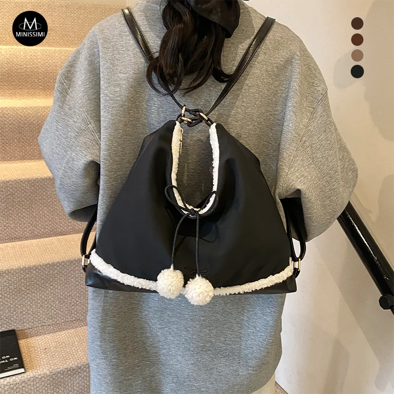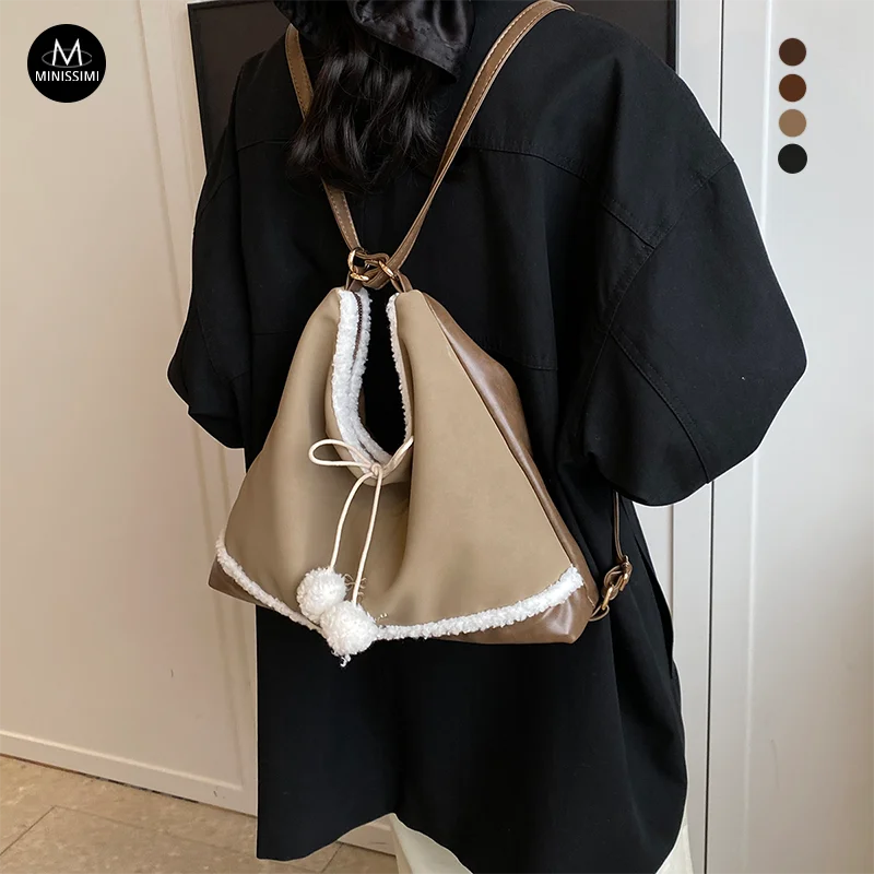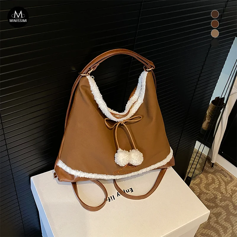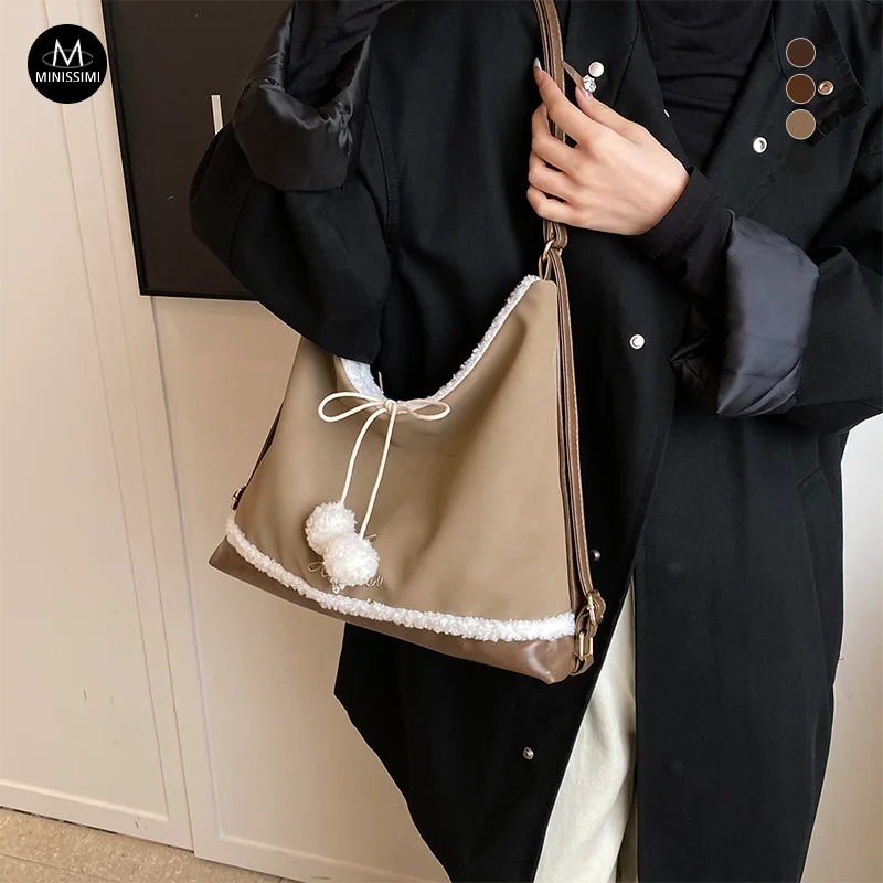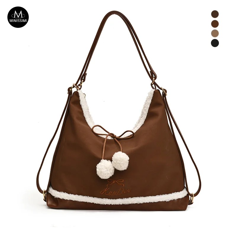 Minissimi Low MOQ Custom Suede Beg Bahu Plush Lining Vintage Solid Color Bag Winter Leisure Women's Shoulder Bags