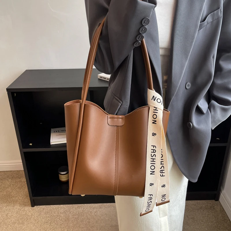 Designer Vintage Popular Ladies Women Crossbody Shoulder Hand Bags Fashion Casual Large Capacity Cowhide Leather Bucket Bag 2026