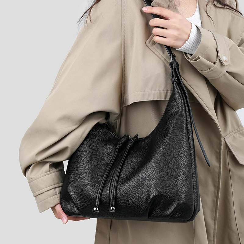 Designer Vintage Popular Ladies Women Crossbody Shoulder Hand Bags Fashion Casual Large Capacity Cowhide Leather Bucket Bag 2026