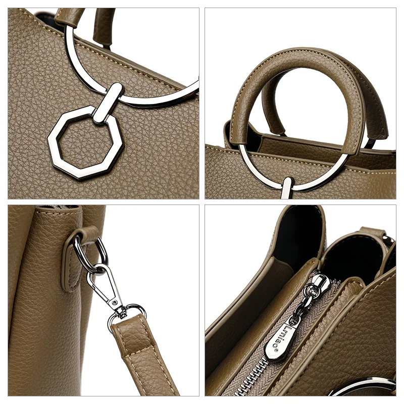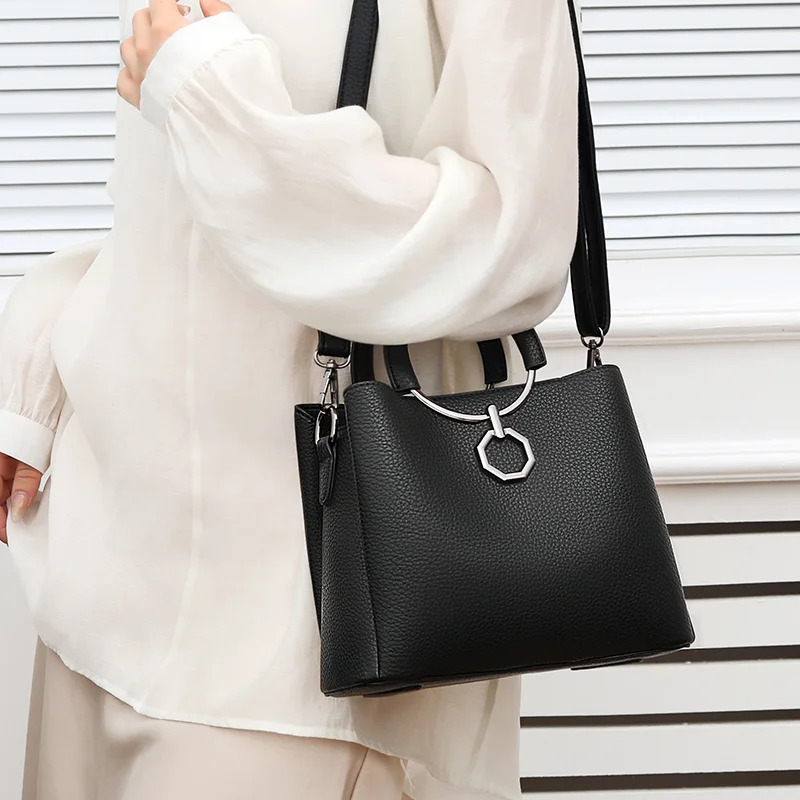 Designer Vintage Popular Ladies Women Crossbody Shoulder Hand Bags Fashion Casual Large Capacity Cowhide Leather Bucket Bag 2026