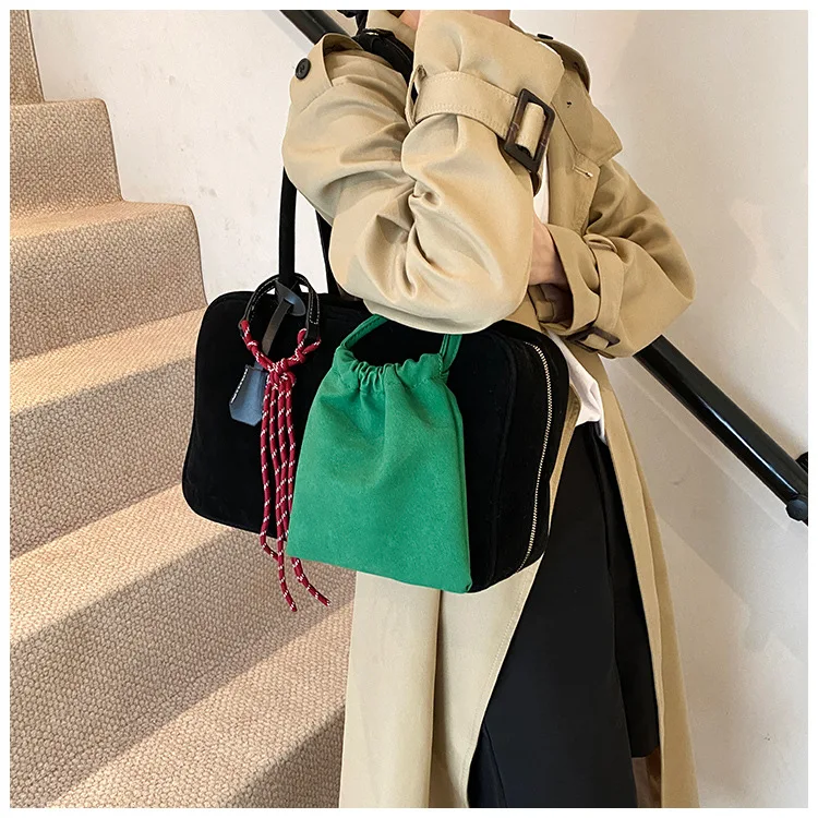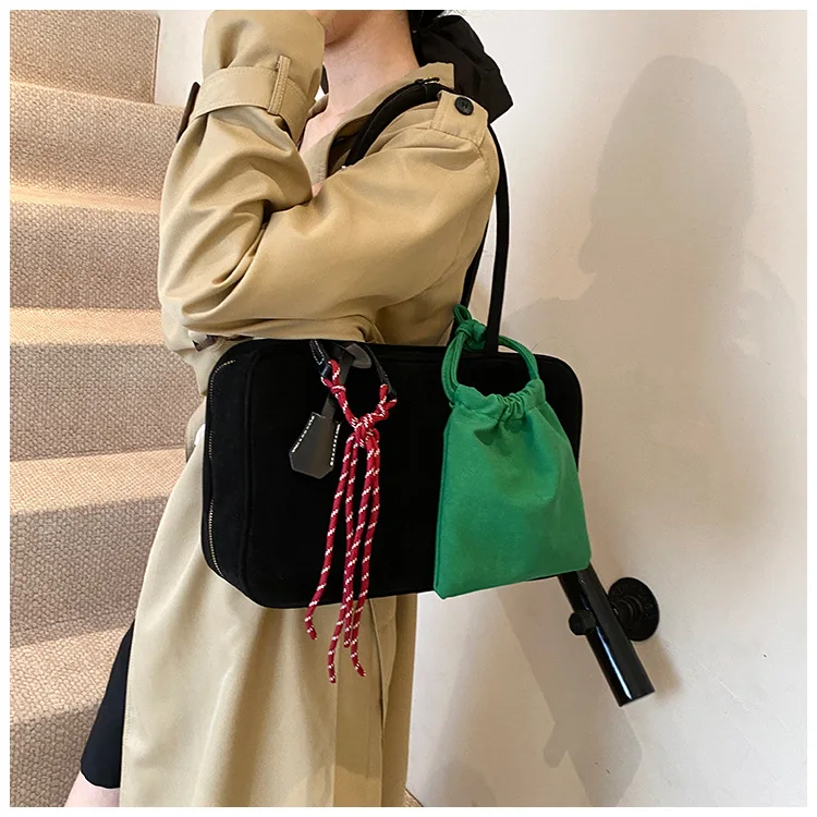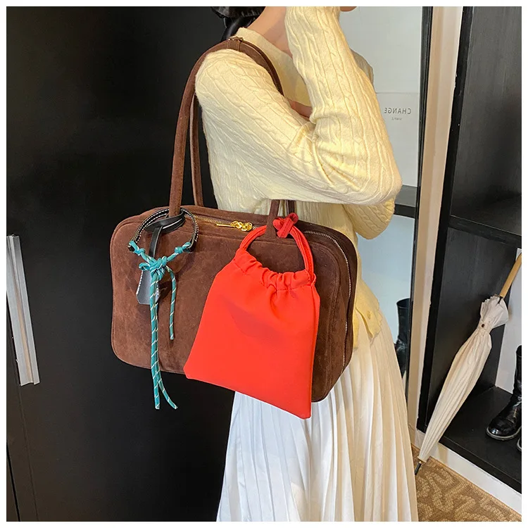 Minissimi Low MOQ Suede Naisten Laukut Solid Color Simple Style Winter Custom Bag English Style Soft Ladies Shoulder Bag