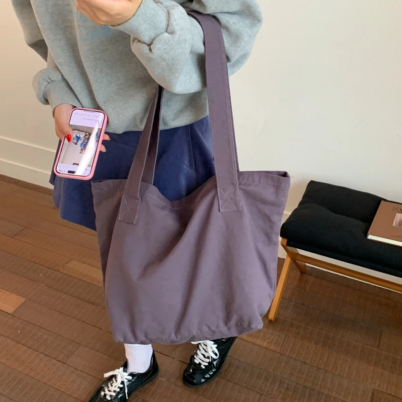 Cotton Canvas with Large Capacity Skulderveske Tote Bag Zipper School Bags Women Crossbody Bag