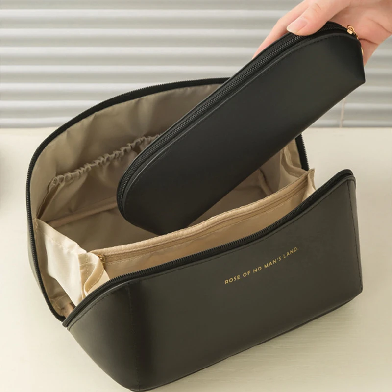 Minissimi Ready to Ship Pu Mini Waterproof Sac Solid Makeup Bag Multi-Layer Storage Cosmetic Bags for Women