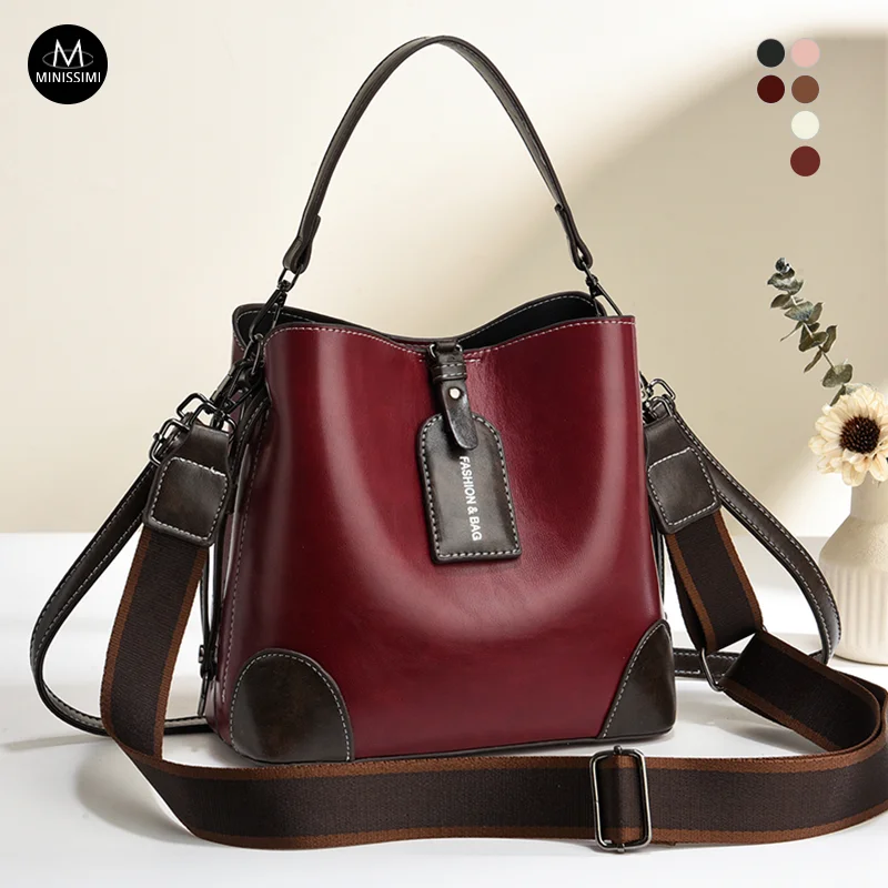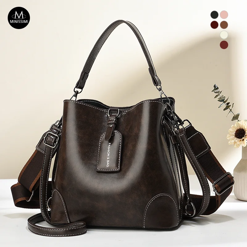 Designer Vintage Popular Ladies Women Crossbody Shoulder Hand Bags Fashion Casual Large Capacity Cowhide Leather Bucket Bag 2026