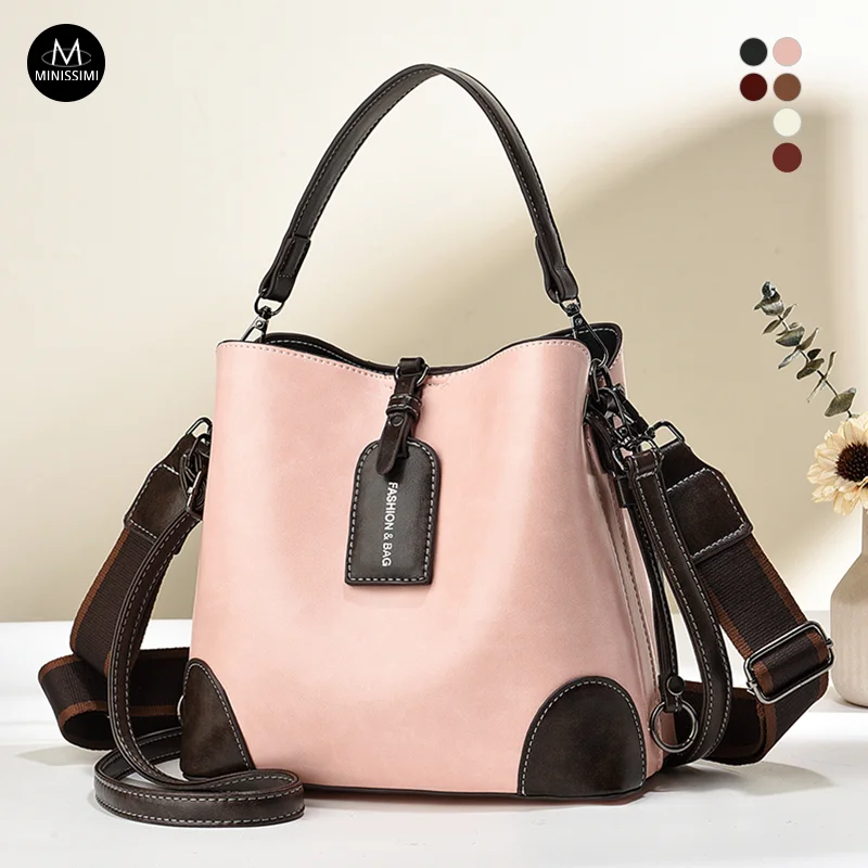 PU Bucket Bag Tag Decor Luxury Handbags Borsa Per Donne Women's Crossbody Bags Shoulder Bag Retro Purses 2026