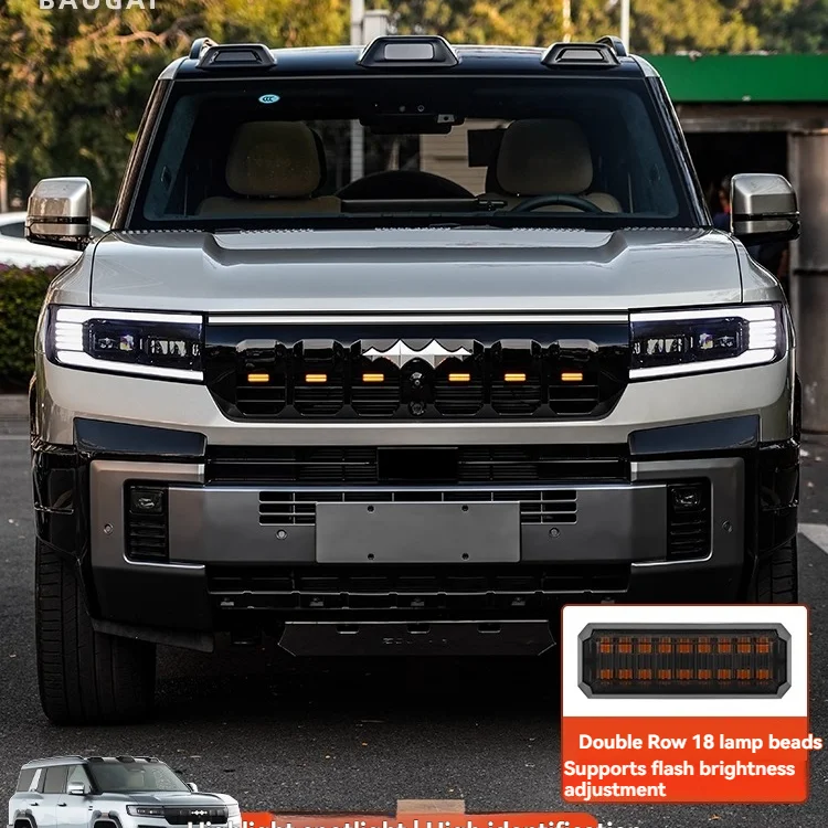 For Equation Leopard 8 Middle Net Yellow Light Front Bumper LED Decorative Flashing Warning Light Daytime Running Light