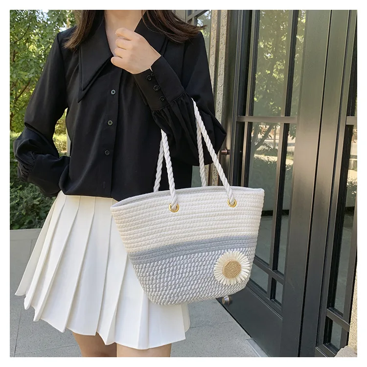 Handmade Woven Bag for Women 2026 New Trendy Ethnic Style Large Capacity Tote Bag Vegetable Basket Bag