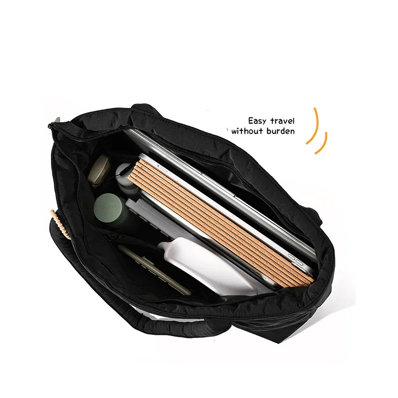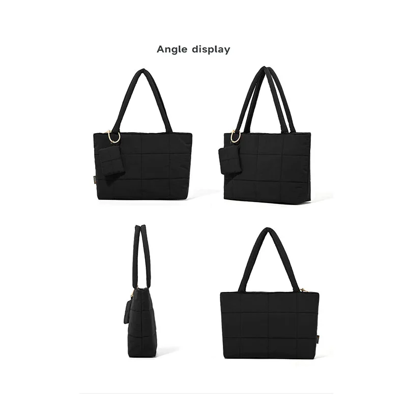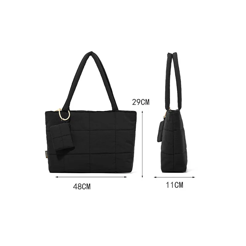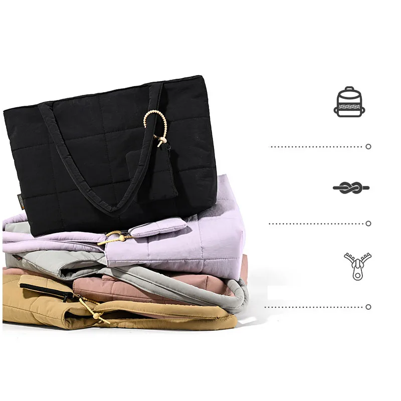 Newest Vintage Tote Bag Cotton Solid Color Embroidery Thread Puffer Work Handbag Waterproof Women's Shoulder Bag with Small Bag