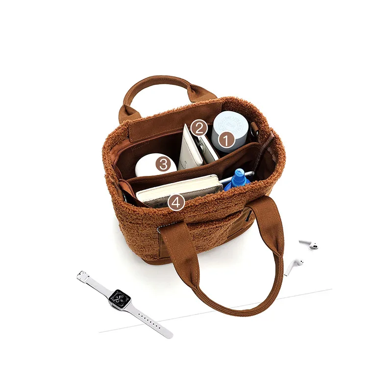 New Fashionable Multi Layered Handbag Large Capacity Teddy Plush Shoulder Crossbody Bag Women's Bag