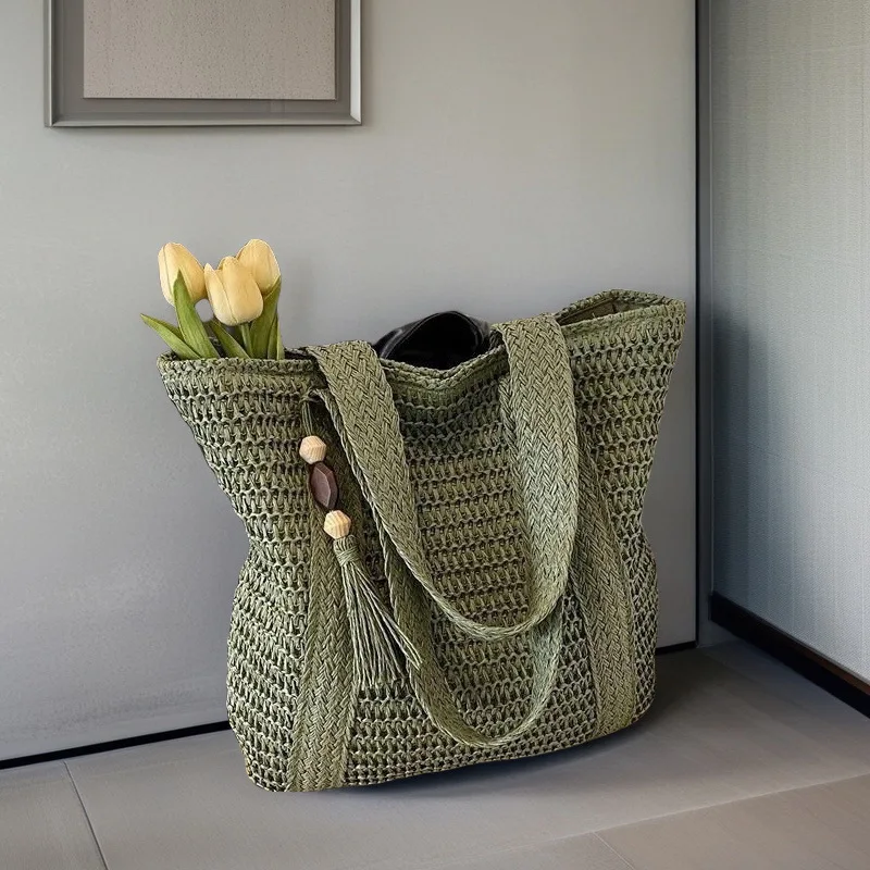 Fashion Woven Beach Bag Paper Woven Woven Cloth Woven Bag Large Capacity Ladies' Crossbody Bag