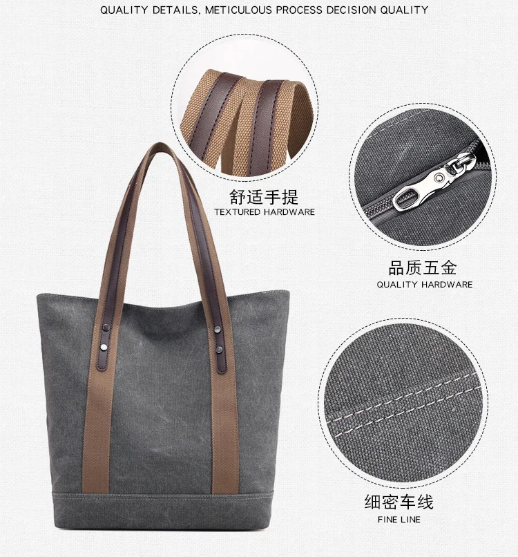 New Women's Canvas Bag Large Capacity Single Shoulder Tote Bag Simple Handbag Retro Casual Bag