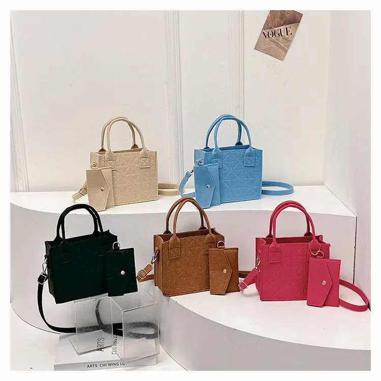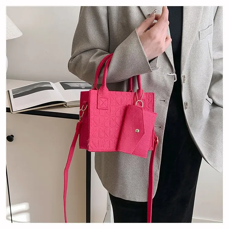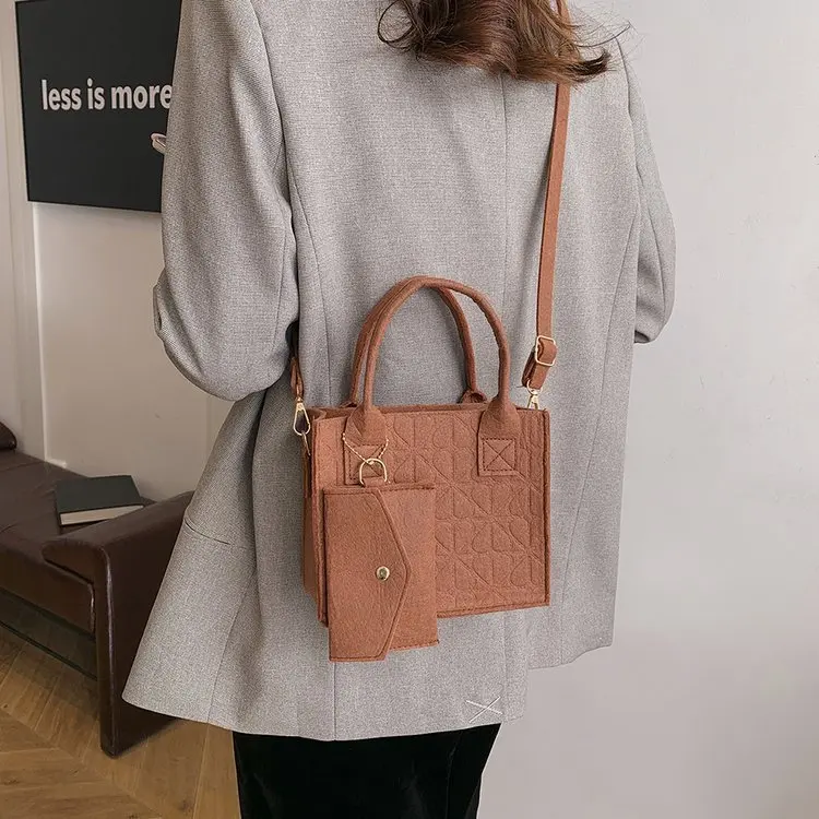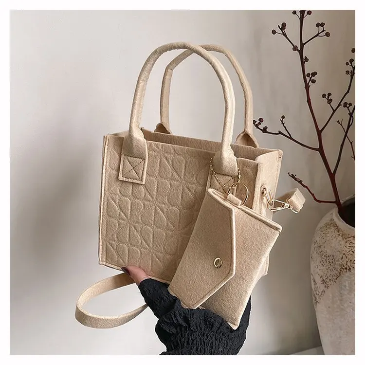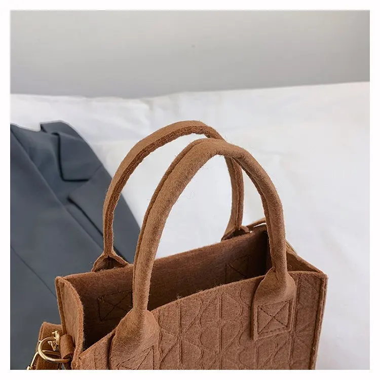 Polyester Felt Handbag for Women, Lightweight Textured Shoulder Bag, Minimalist Open Top Casual Purse Soft Texture Bag