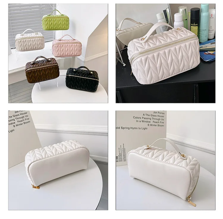 Factory Creamy PU Leather Puffy Women's Makeup Bag Travel Make up Organizer Toiletry Storage PU Cosmetic Bag Makeup Bag