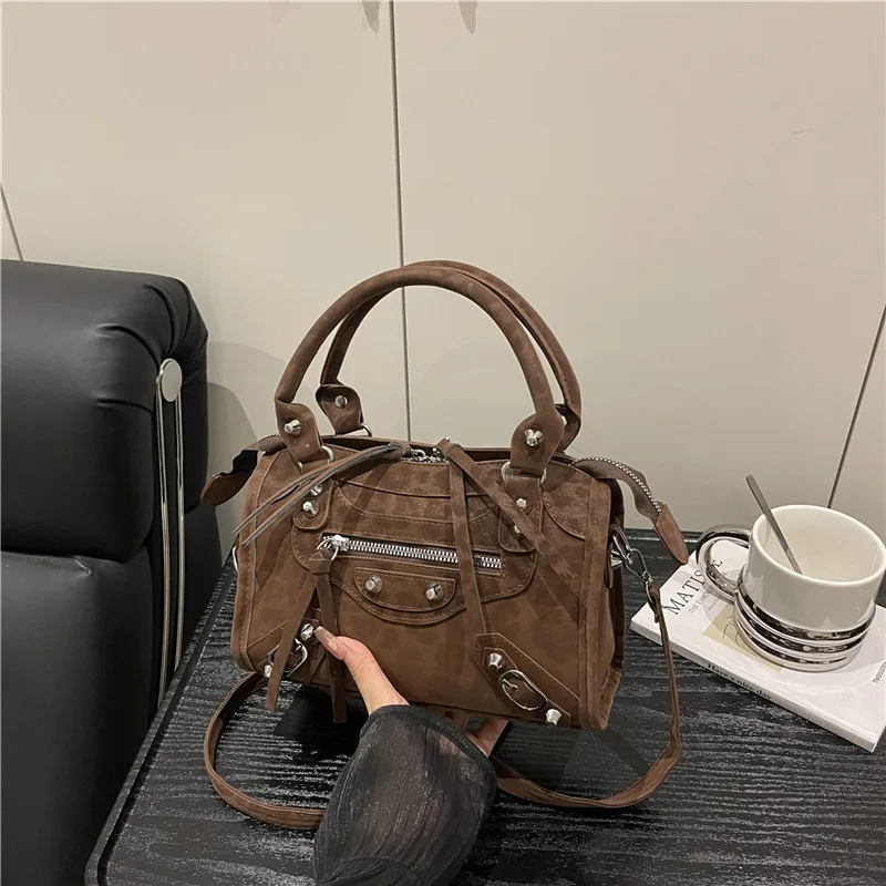 Personality Motorcycle Rivet Retro Large Capacity Shoulder Small Square Bag New Simple Casual Design Crossbody Bag for Women