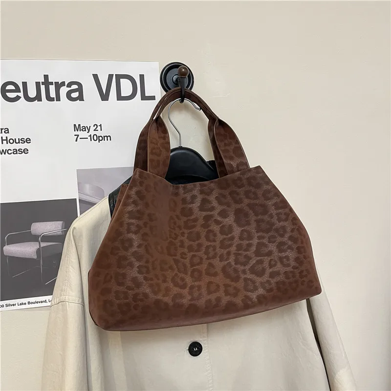 Large-Capacity Women's Bag Autumn New Leopard-Texture Design Simple and Vintage Handbag,Shoulder Bag Commuting Tote