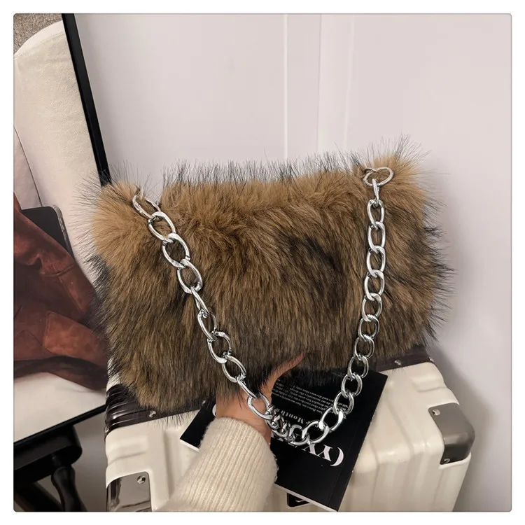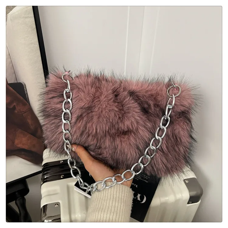 2026 Korean Version Plush Bag Autumn and Winter Fashion Women's Bag with Chain Large Capacity Casual Shoulder Bag