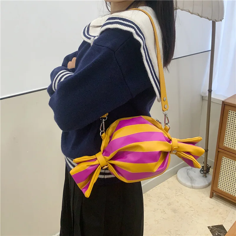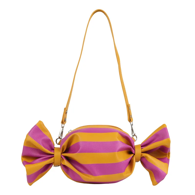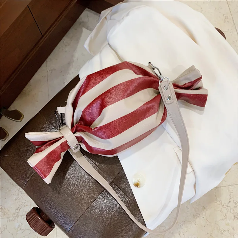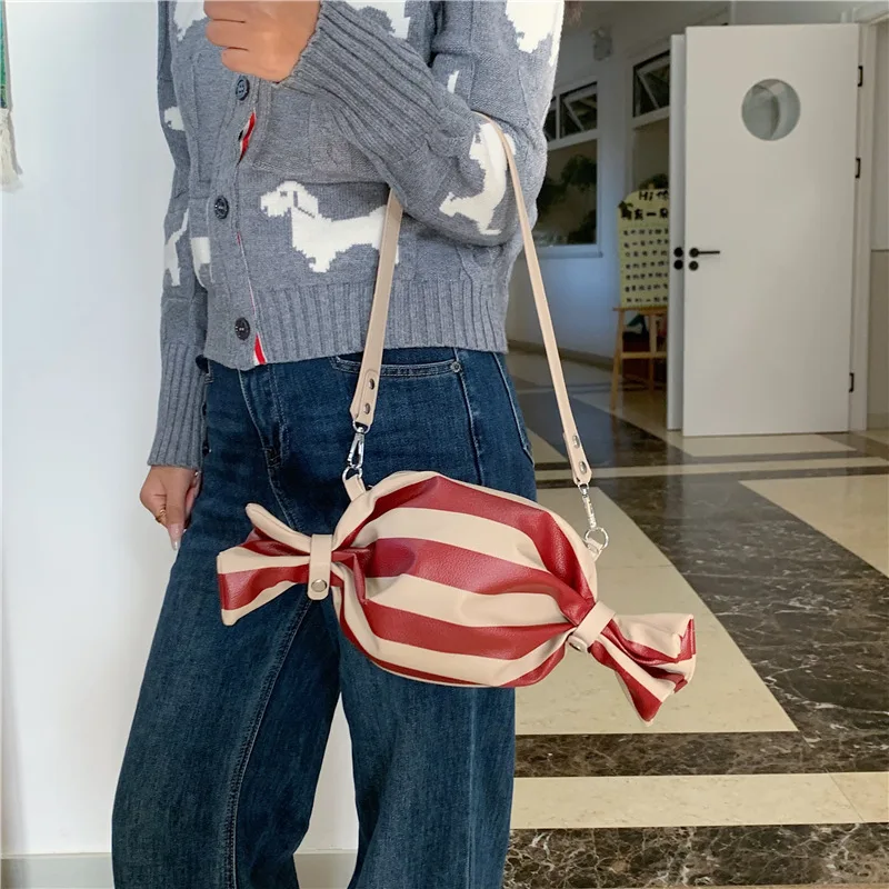 A Niche Design Candy Shaped Crossbody Bag PU Leather Striped Shoulder Bag Trendy Irregular Handbag for Women