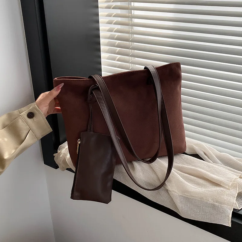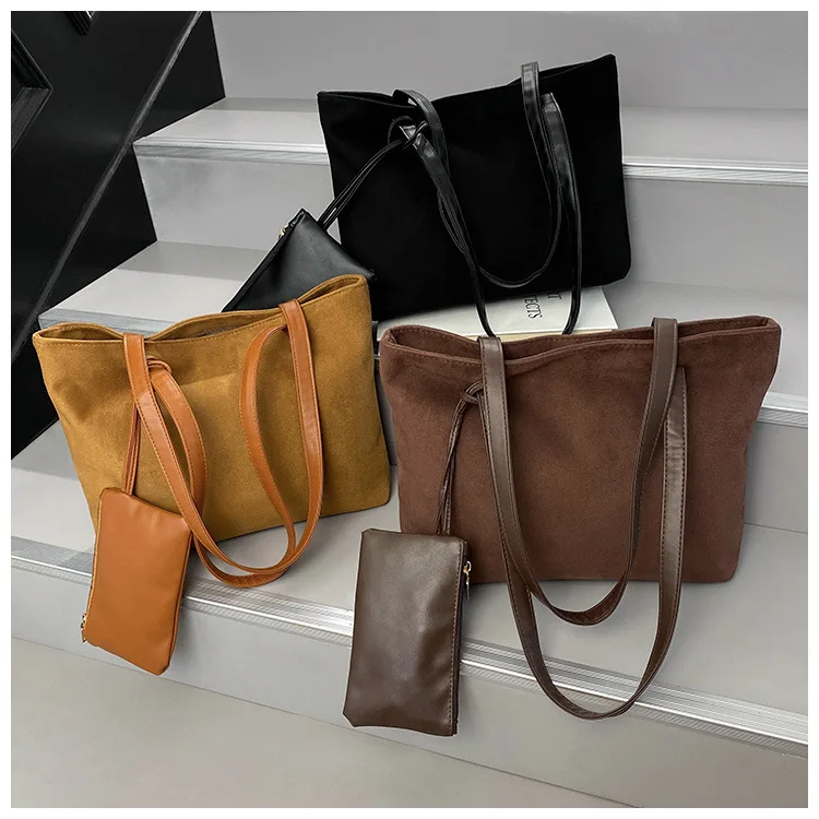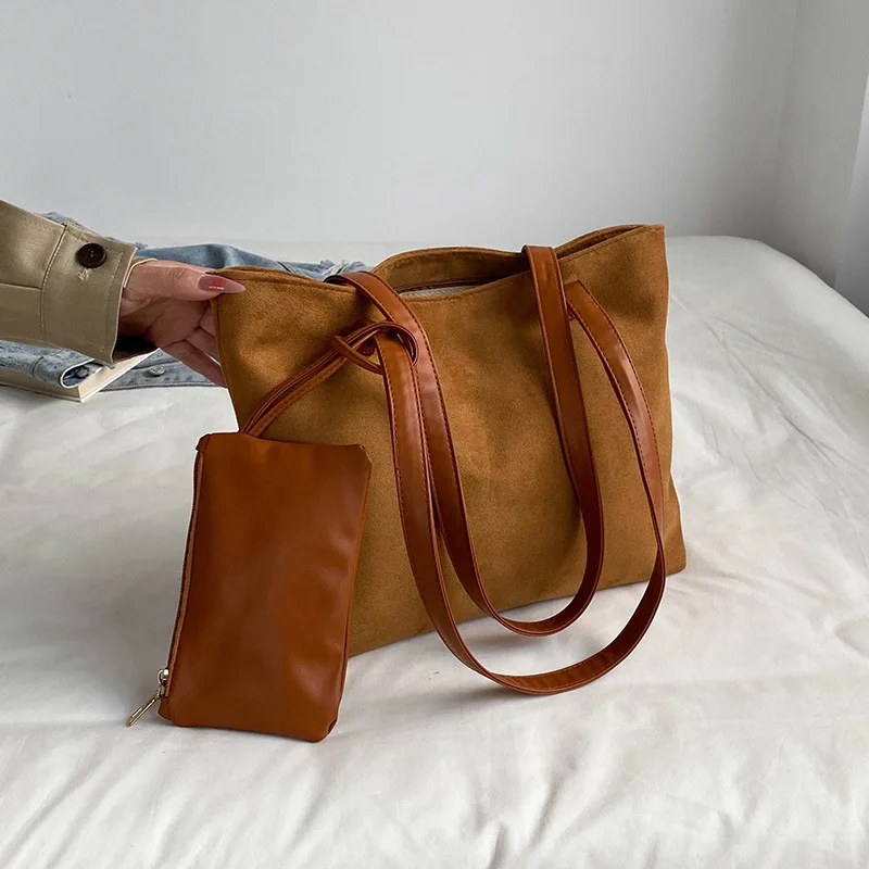 Suede Tote Bag for Women 2026 New Soft Leather Shoulder Bag Trendy and Fashionable Handbag with Wallet