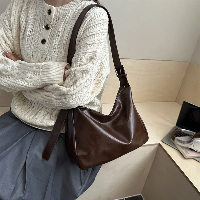 Designer Vintage Popular Ladies Women Crossbody Shoulder Hand Bags Fashion Casual Large Capacity Cowhide Leather Bucket Bag 2026