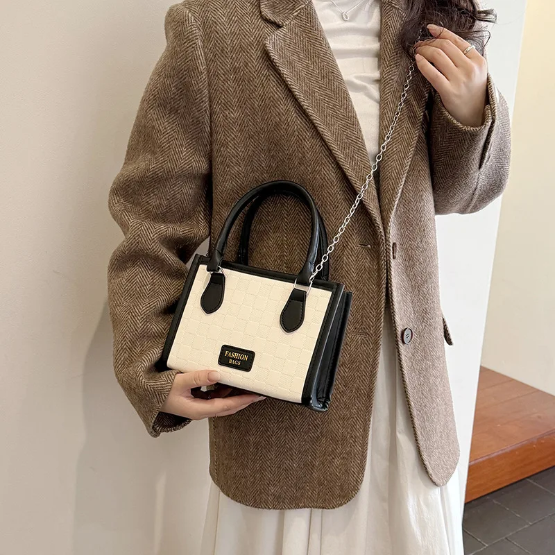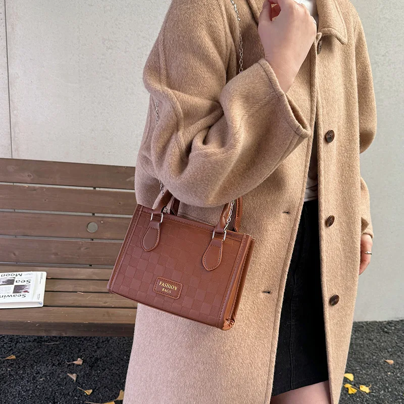 2026 New Autumn and Winter Simple Texture Women's Small square Bag Letter Decoration PU Leather Women's Chain Bag Crossbody Bag
