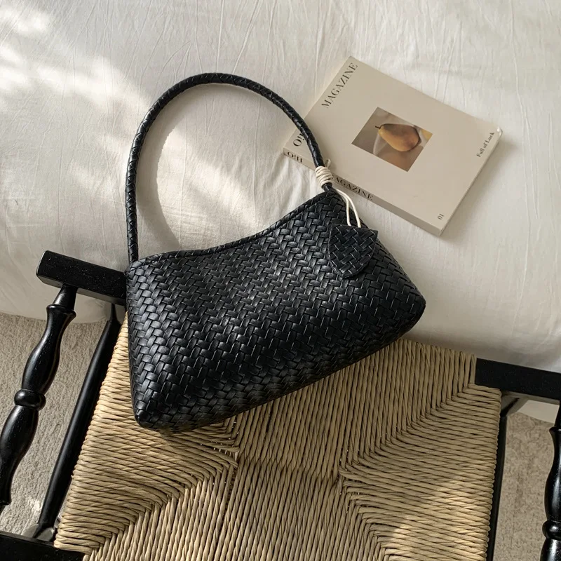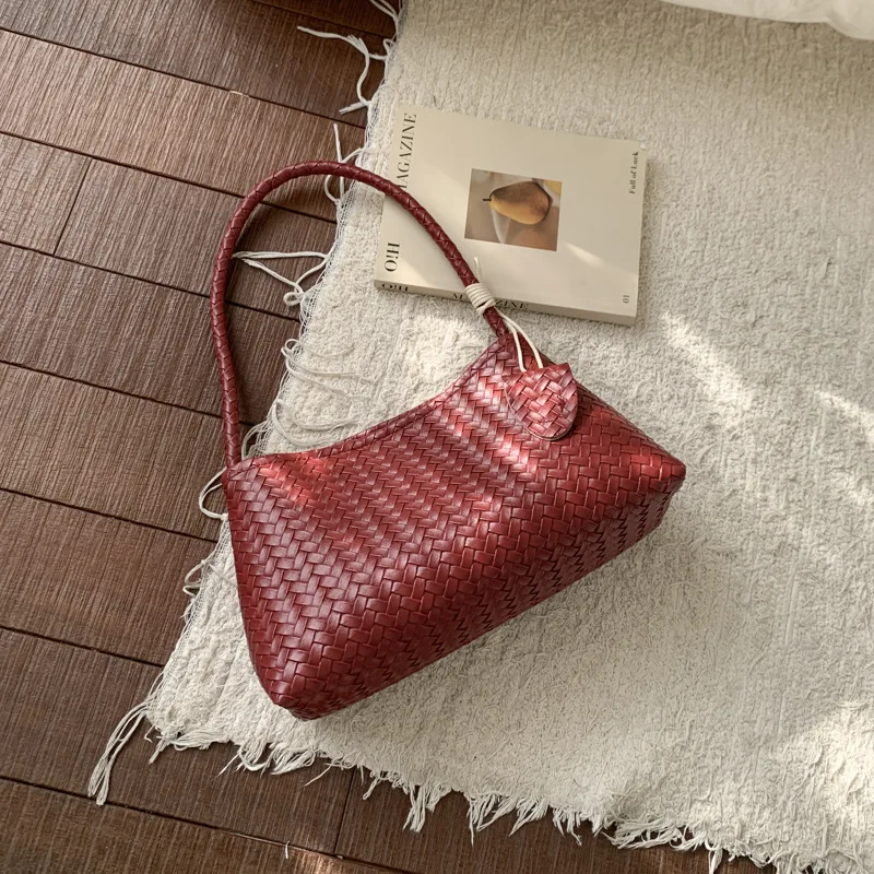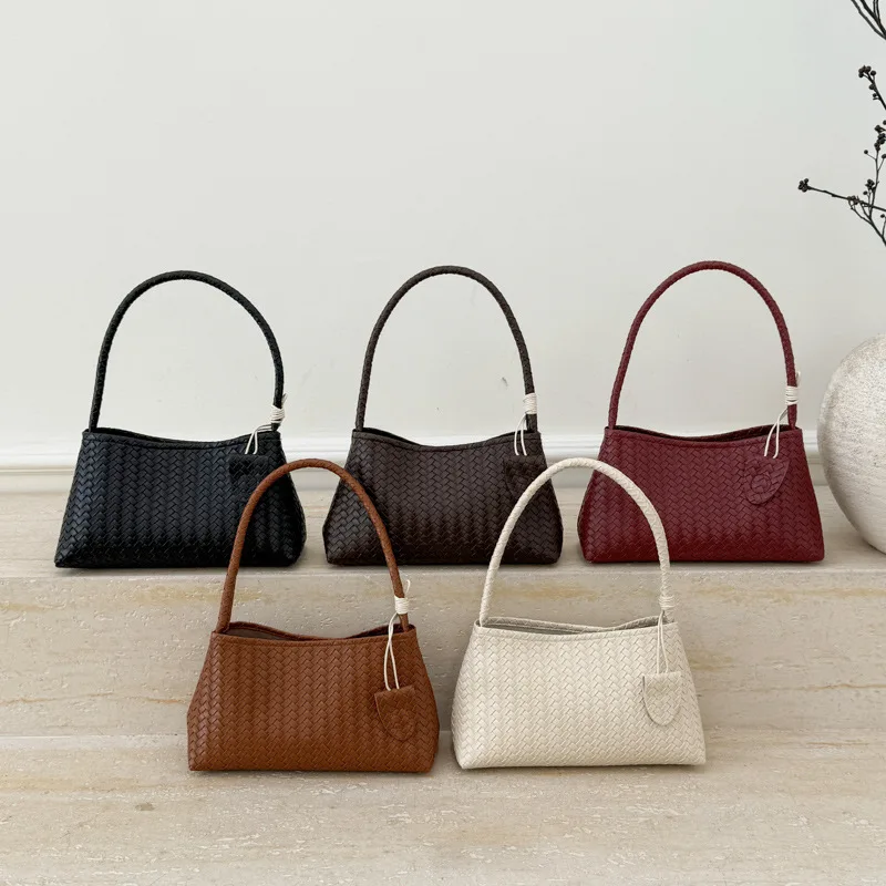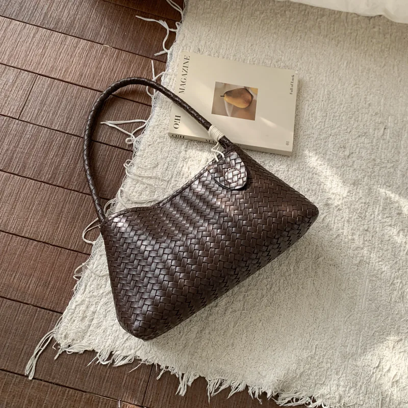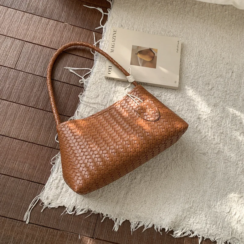 Fashionable PU Leather Retro Woven Pattern Bag Armpit Bag for Women 2026 New Casual Simple Shoulder Bag for Women