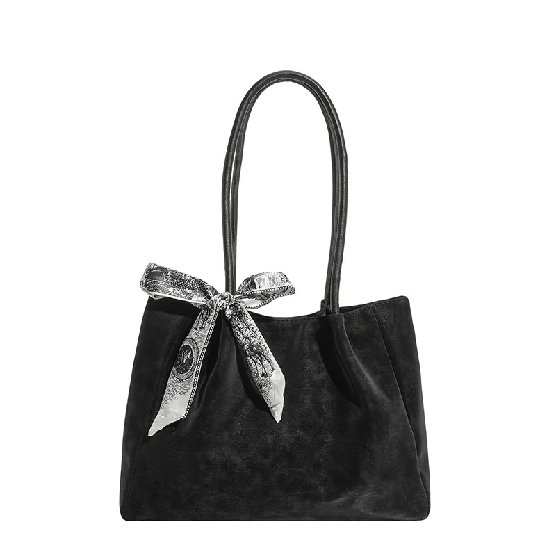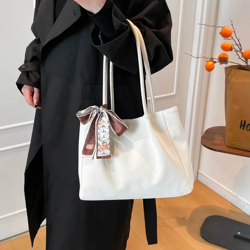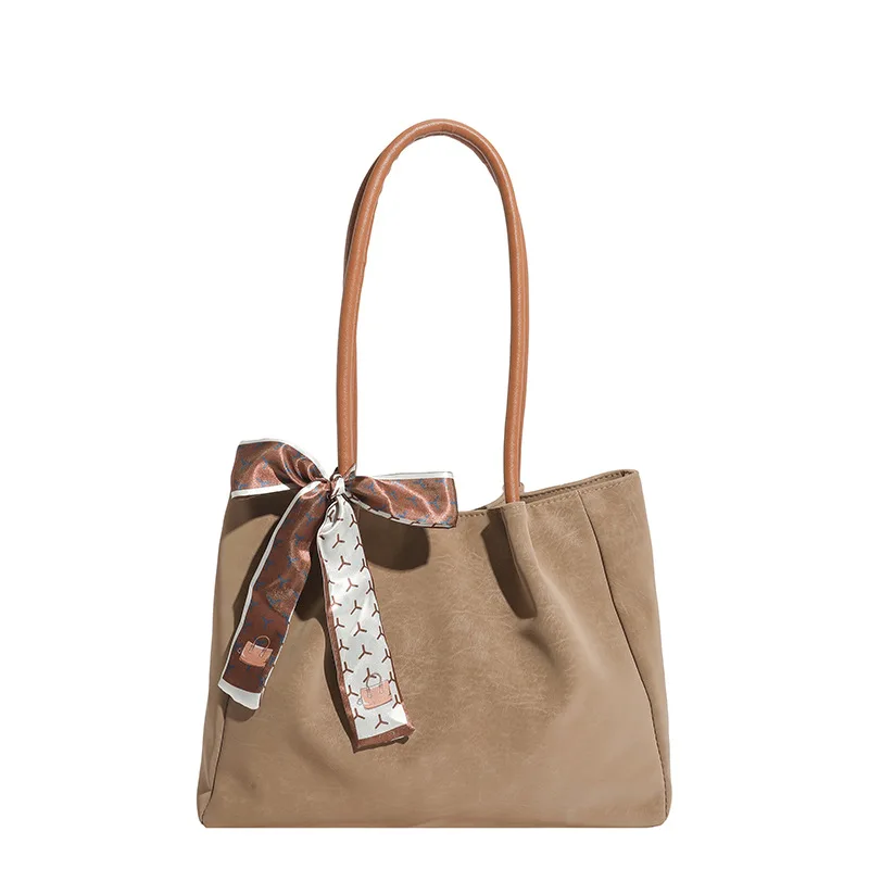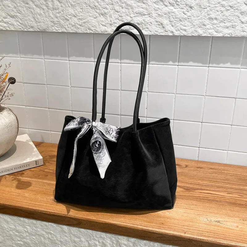 Trend Retro Solid Color Handbag Single Shoulder Tote Bag with Silk Scarf Autumn and Winter New Women's Bag