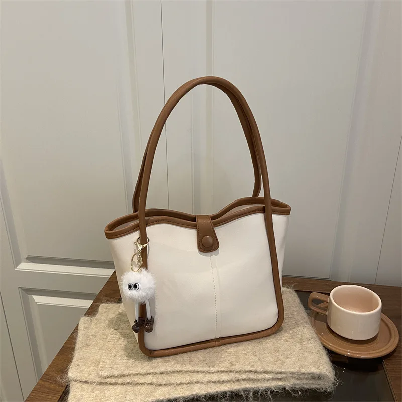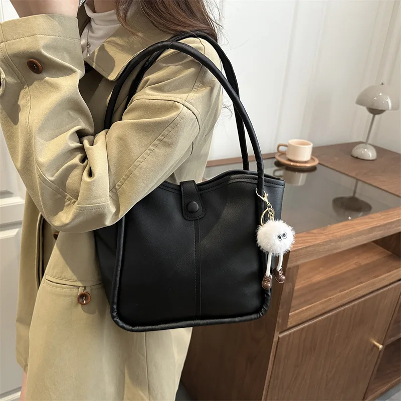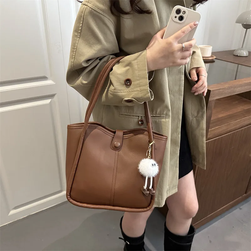 Lightweight Luxury Handbag for Women PU Leather Bucket Bag with Pendant Autumn and Winter New Crossbody Bag